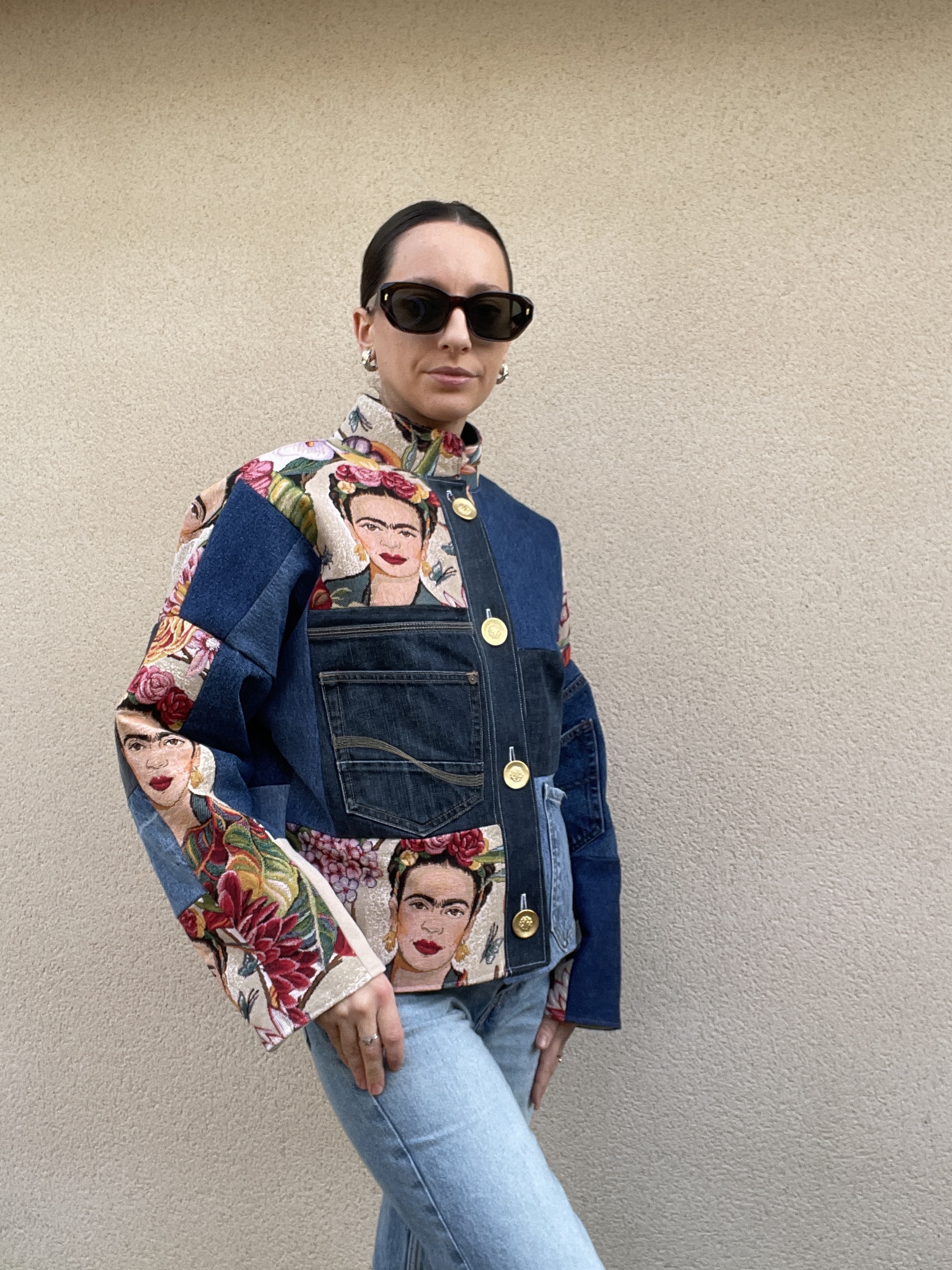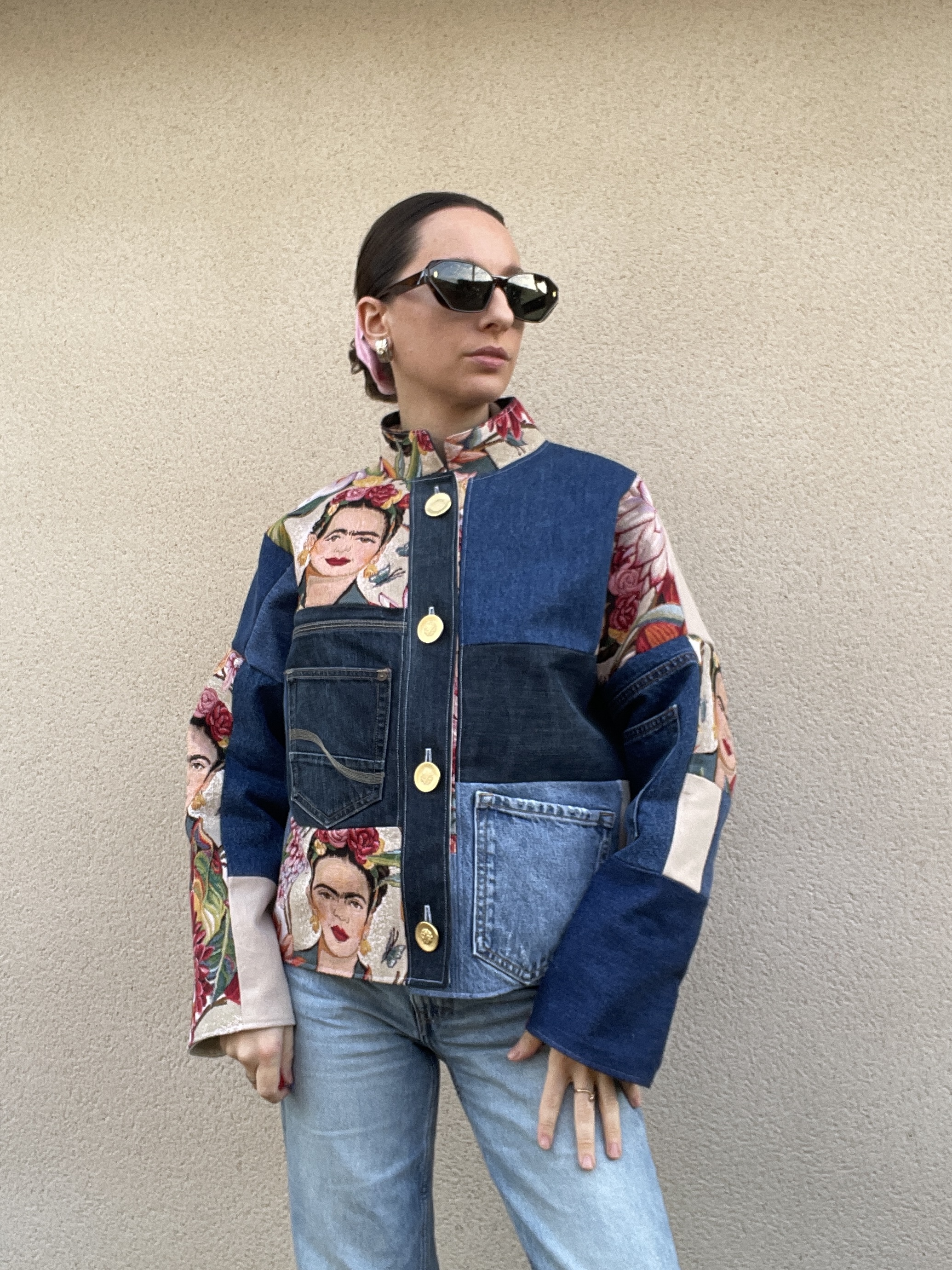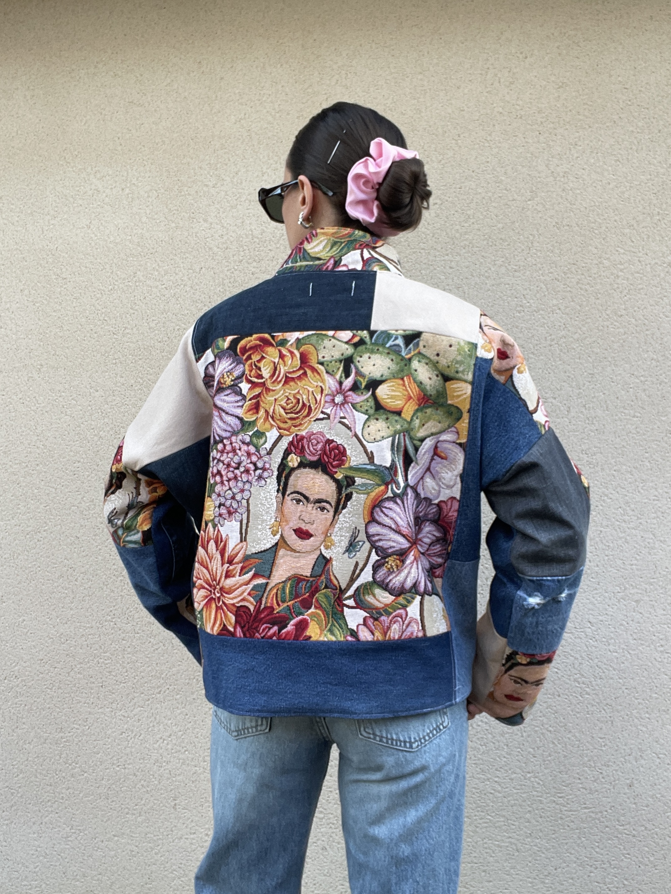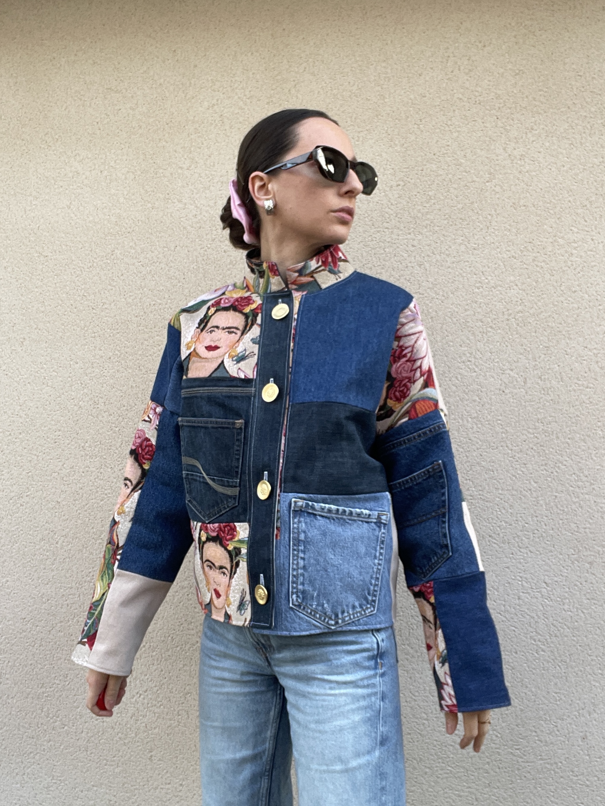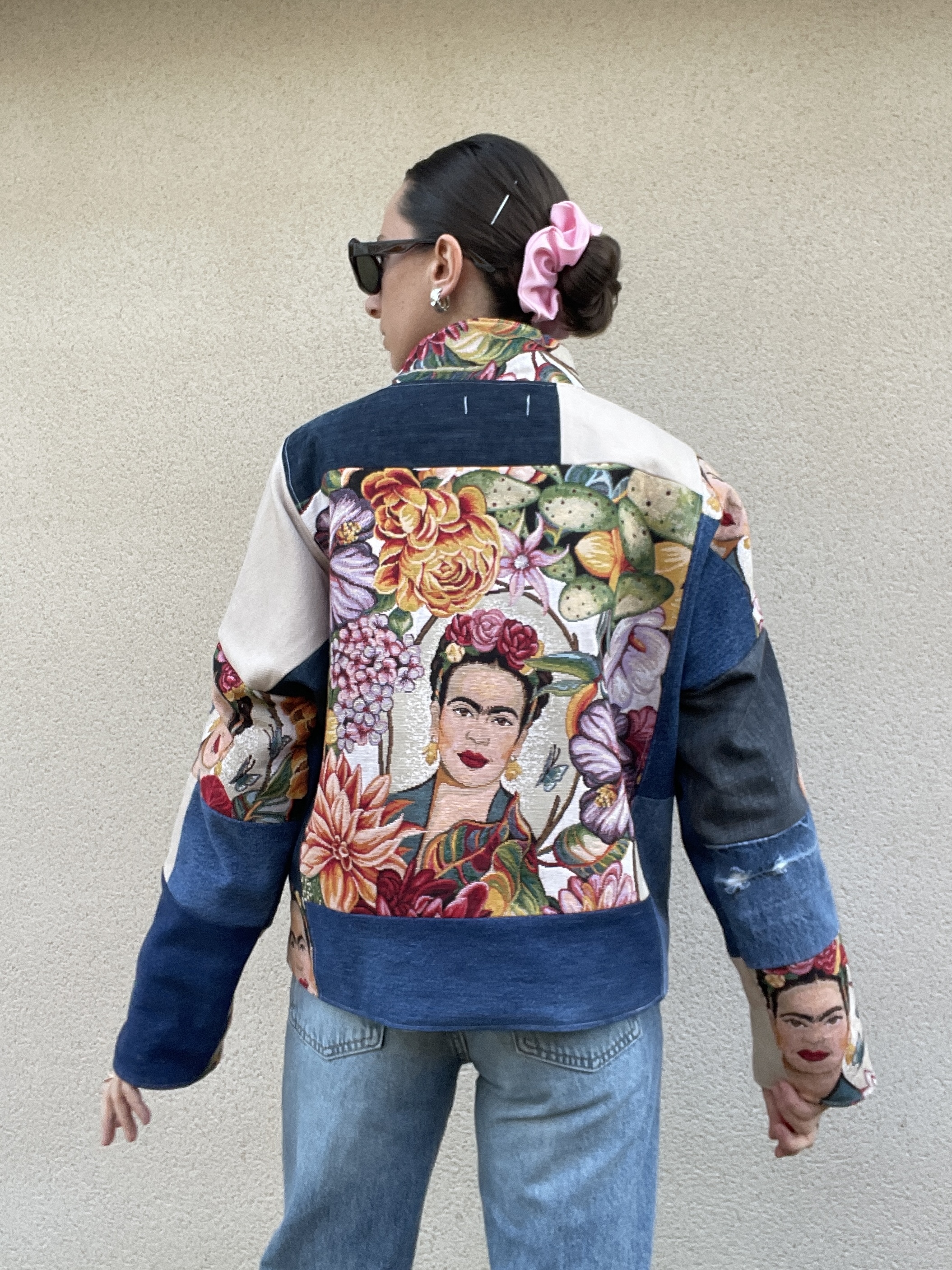 Patchwork de jacquard Frida Kahlo et de jeans