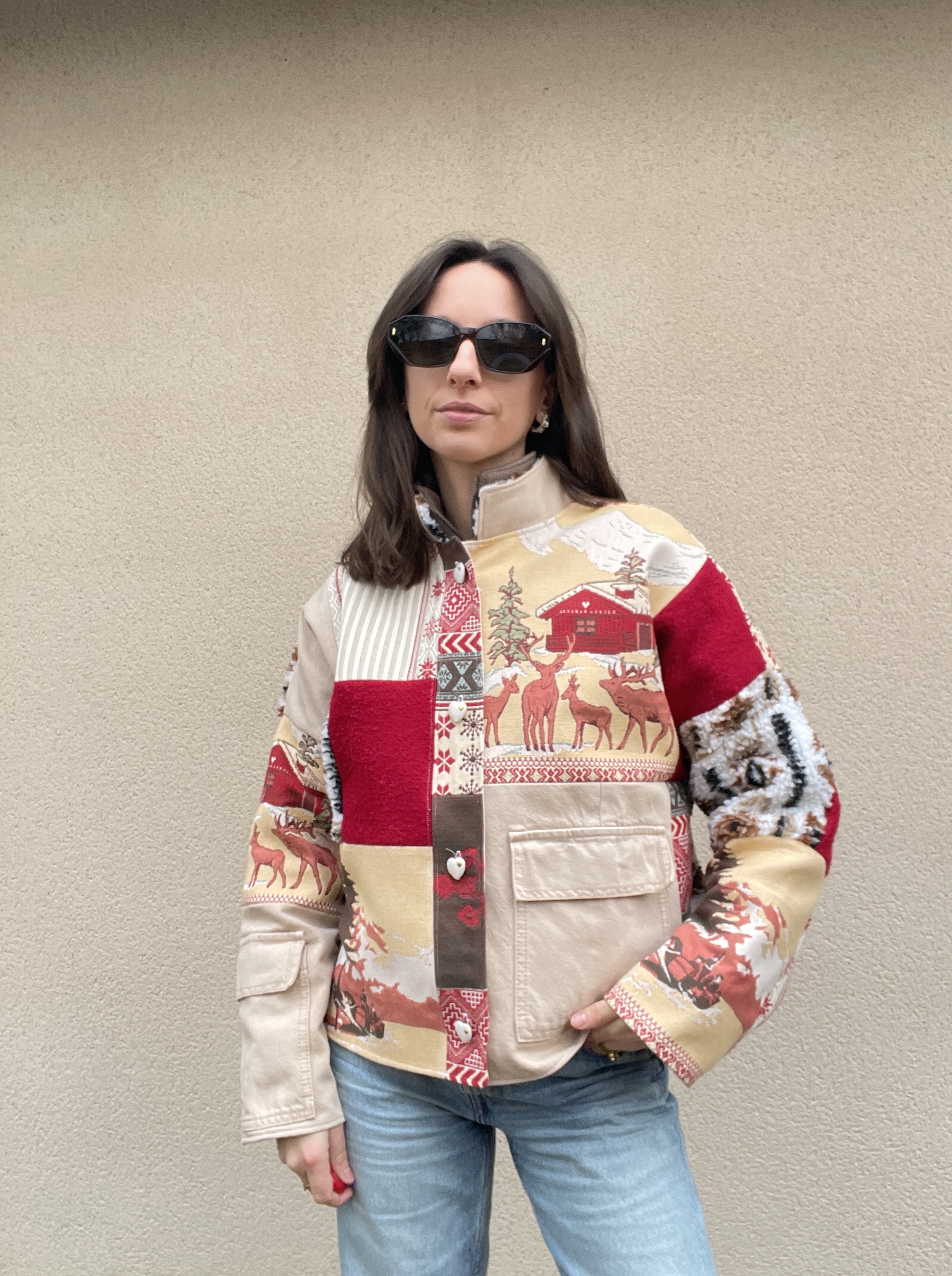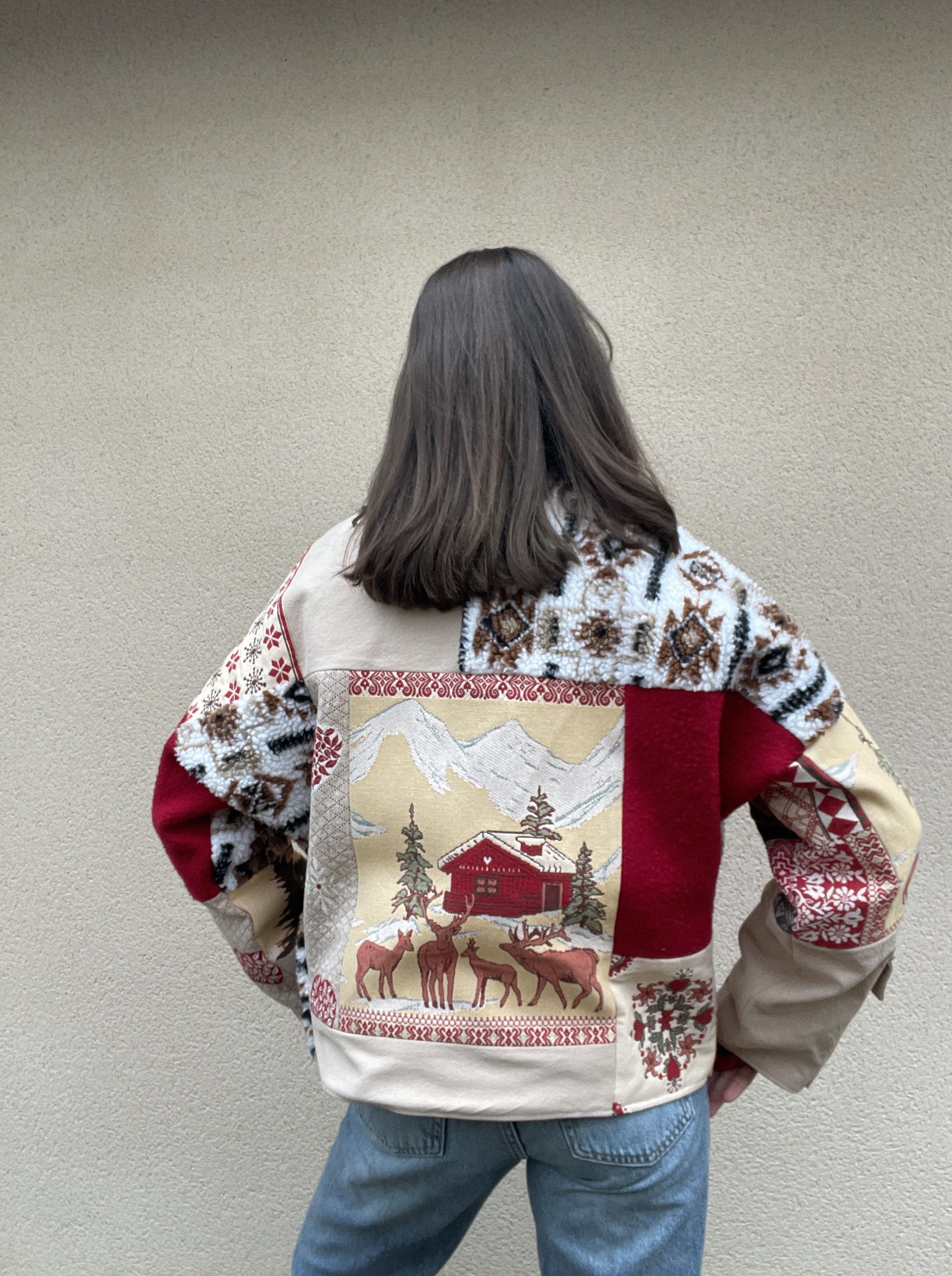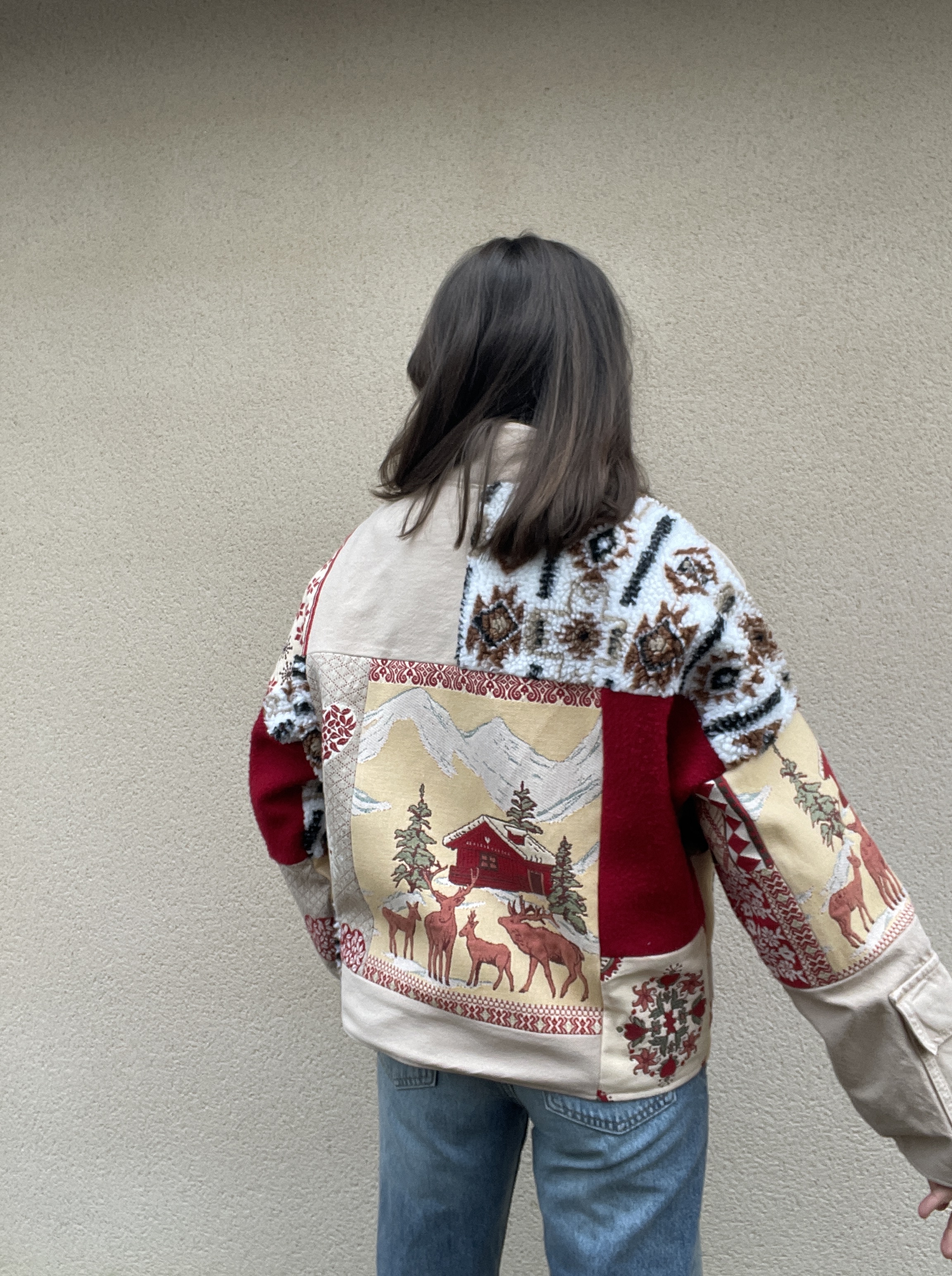Patchwork de tissus : sherpa, jacquard et jean