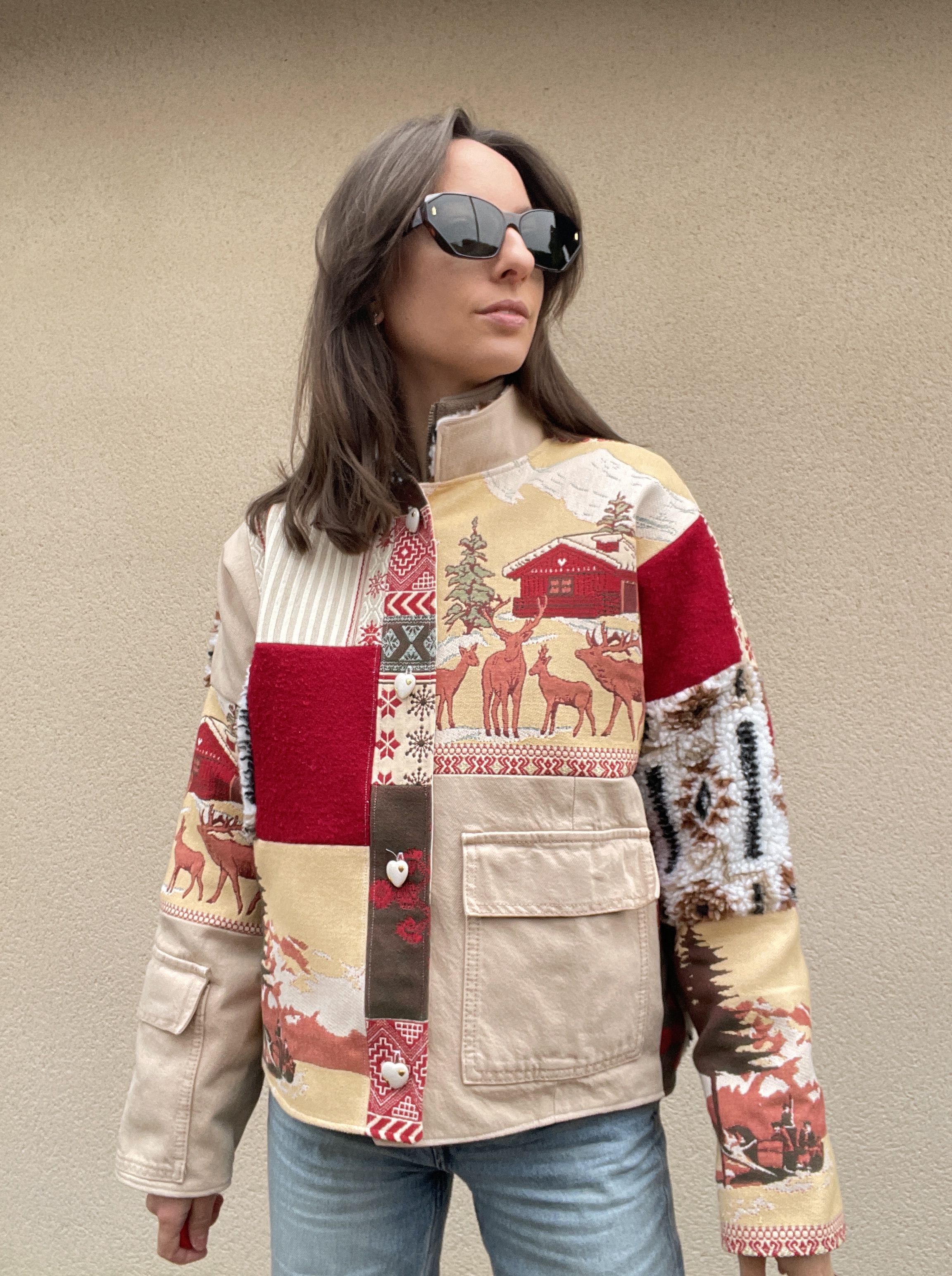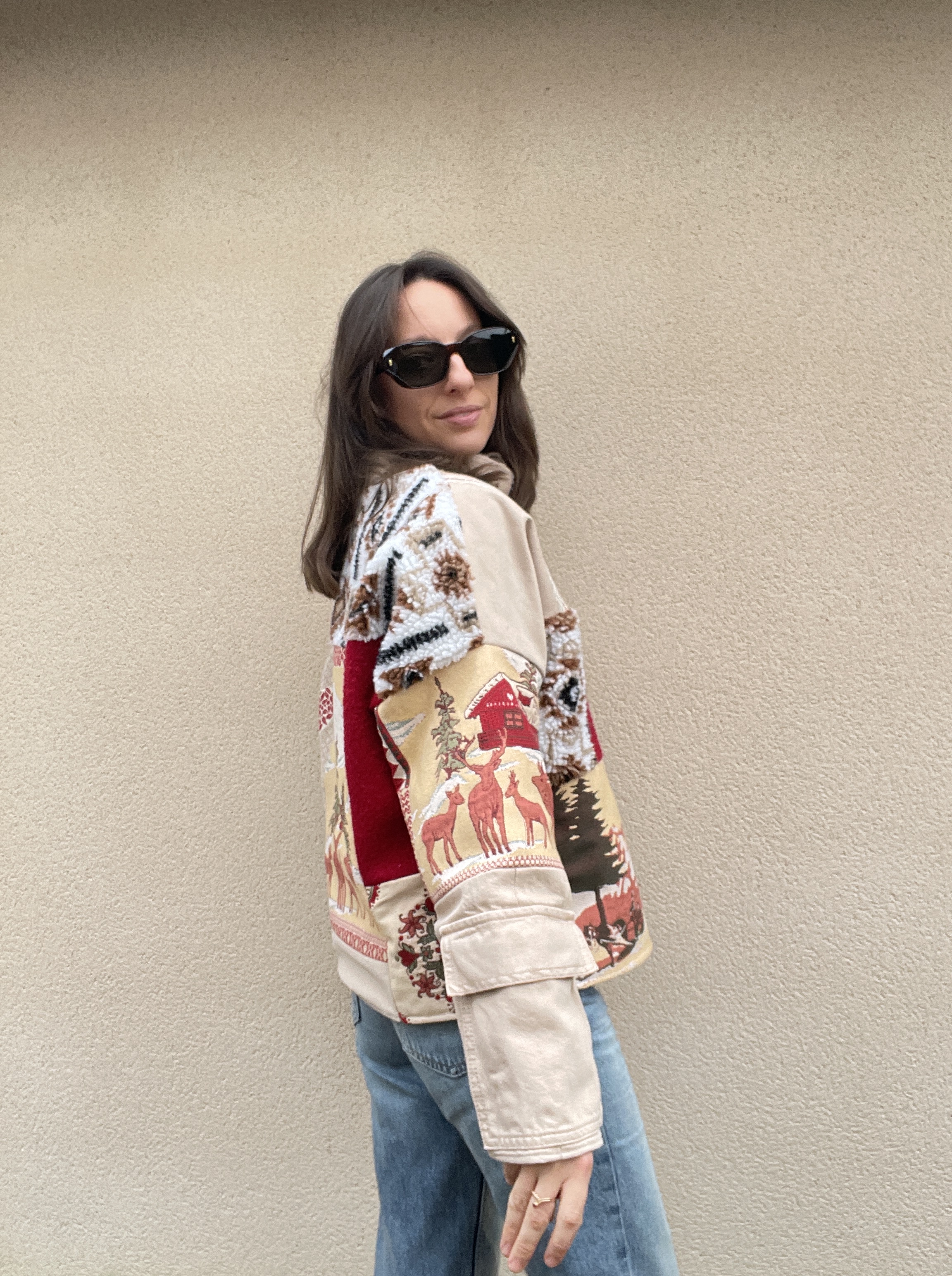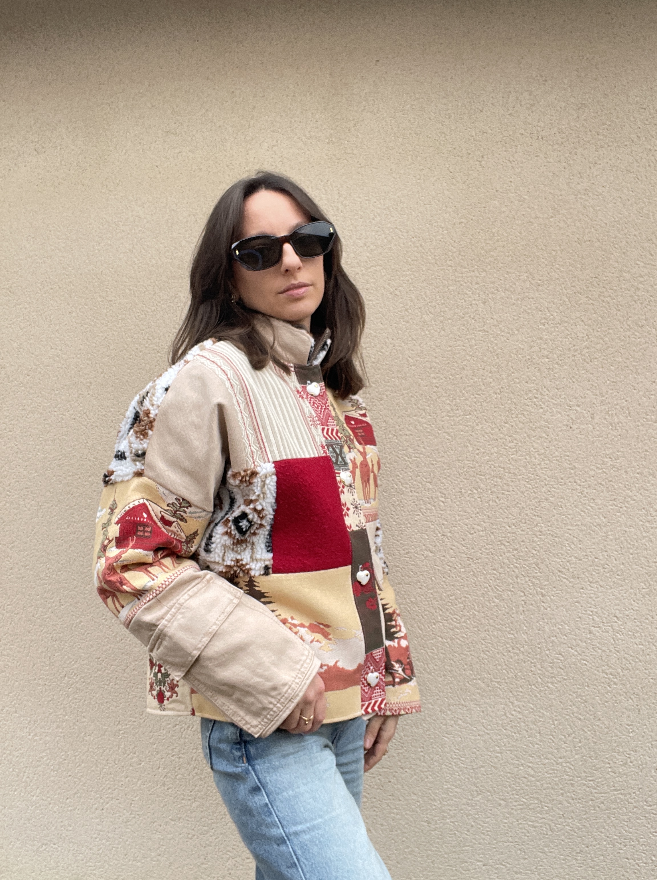 Patchwork de tissus : sherpa, jacquard et jean