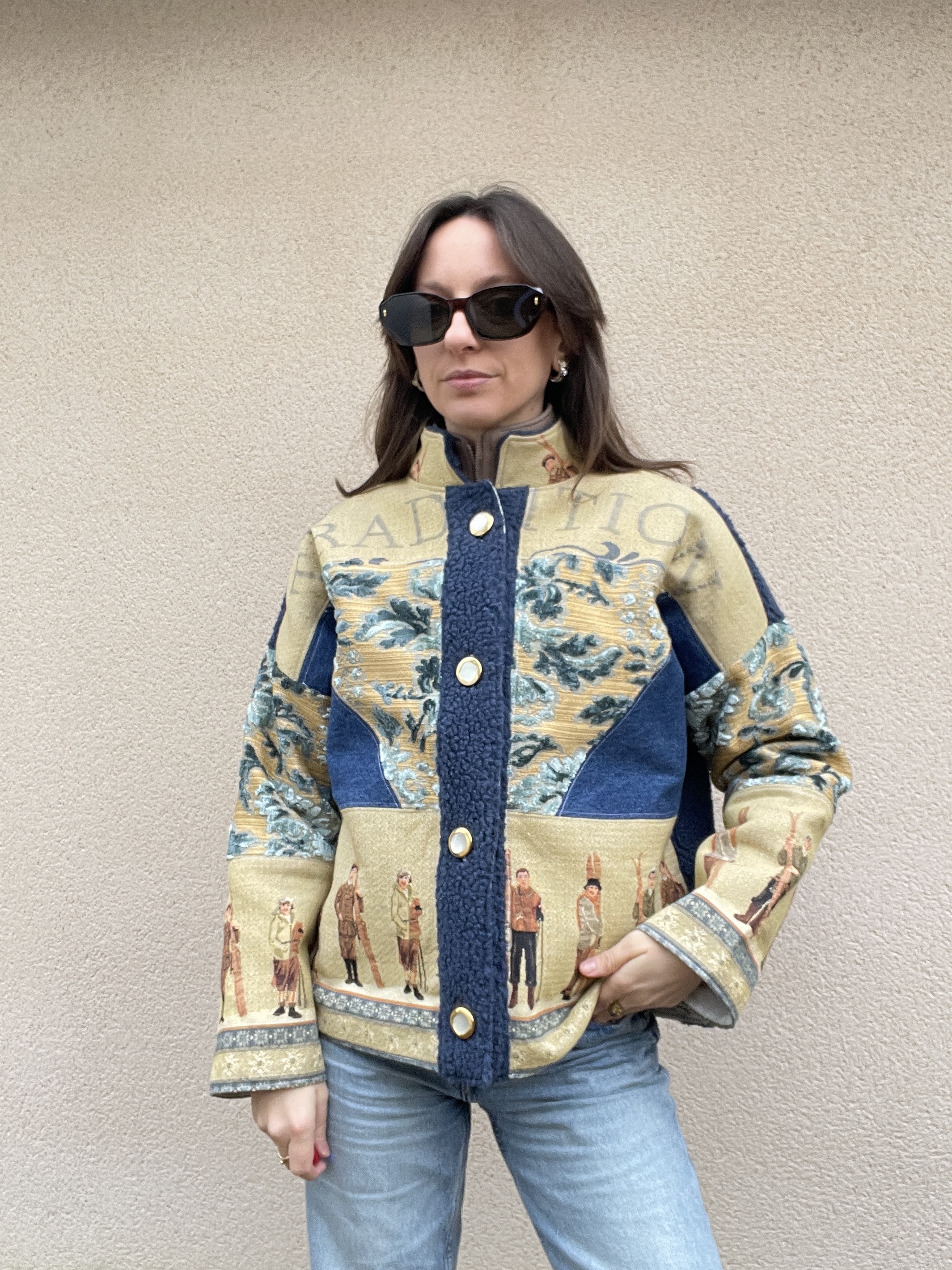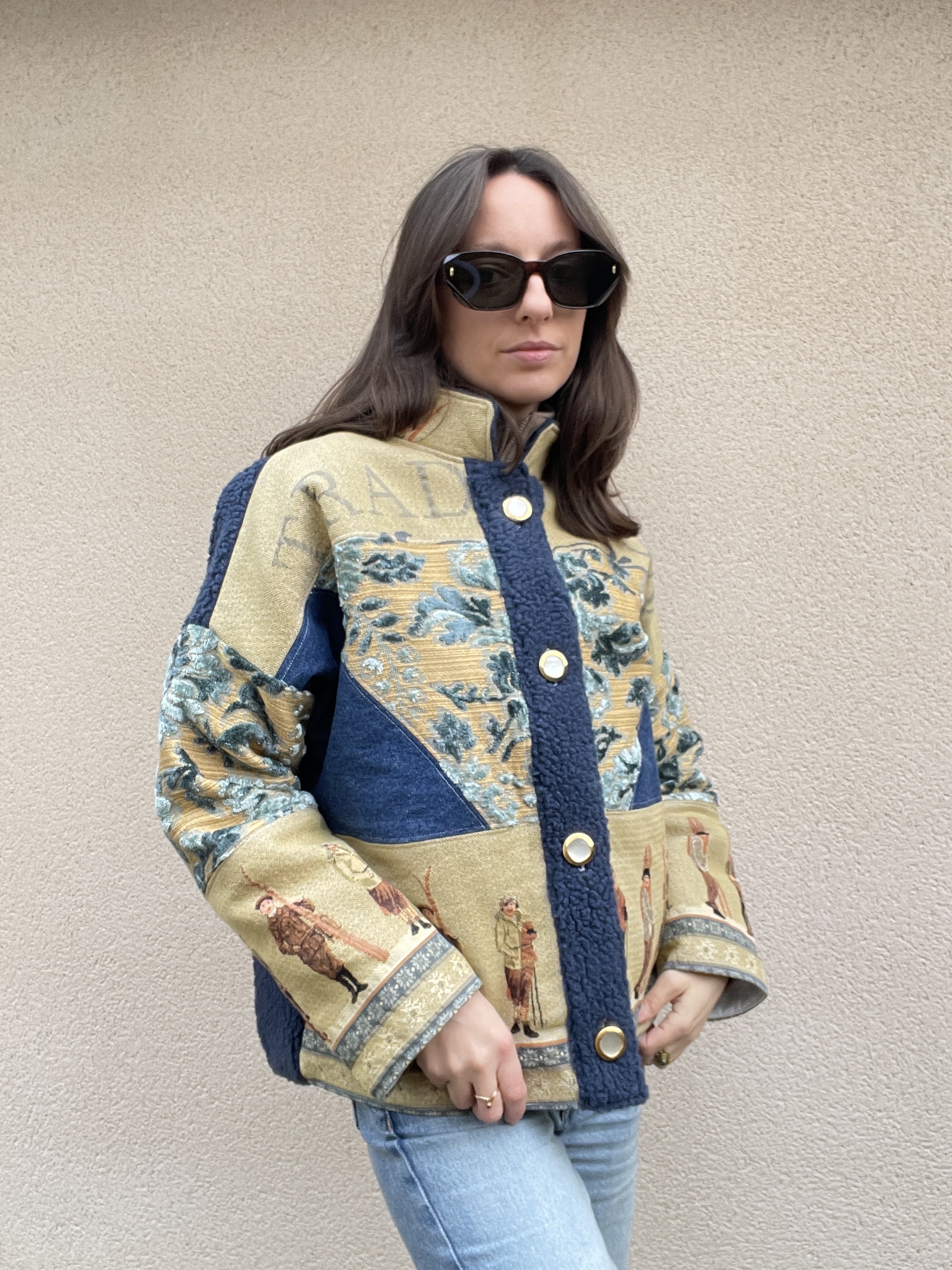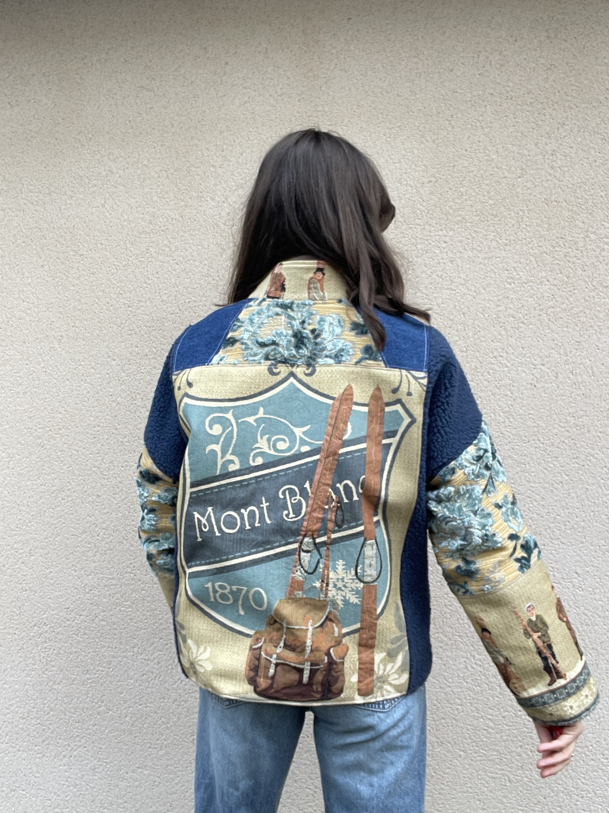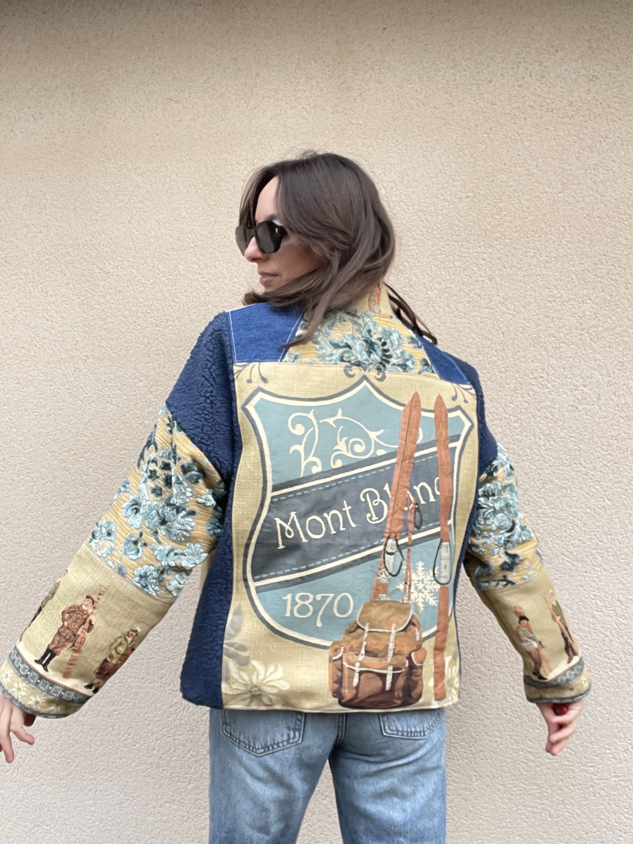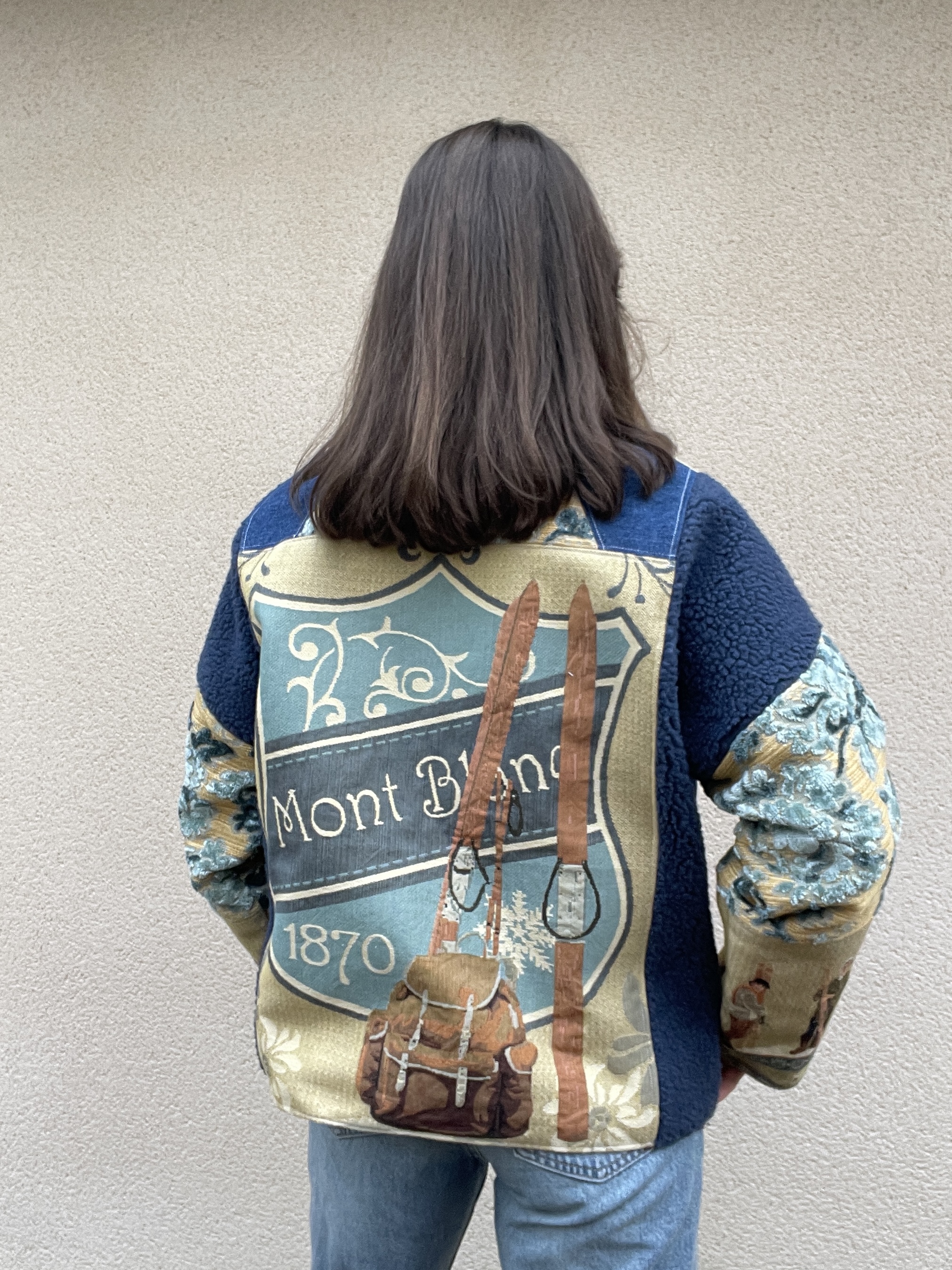 Patchwork de tissus : sherpa, jacquard, lainage, jean