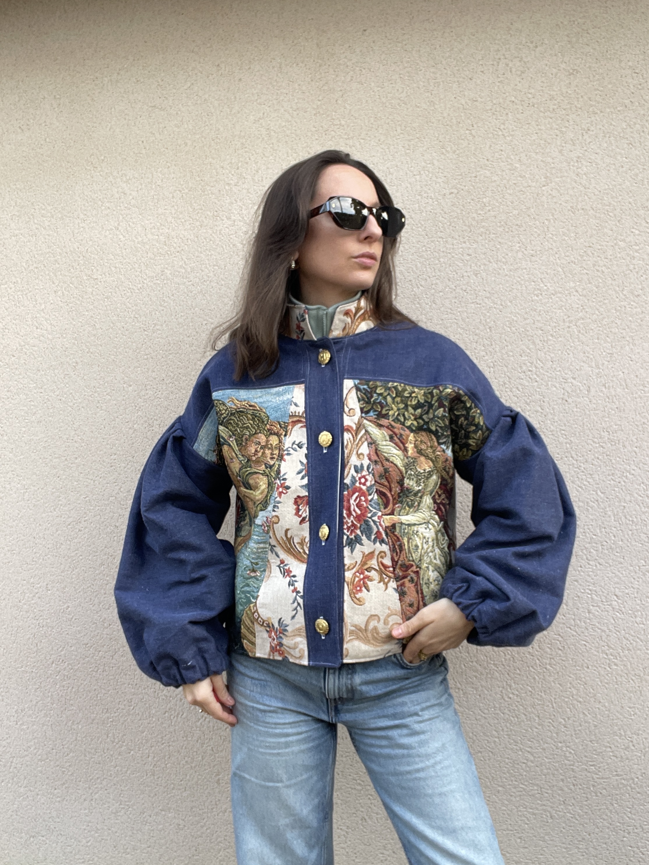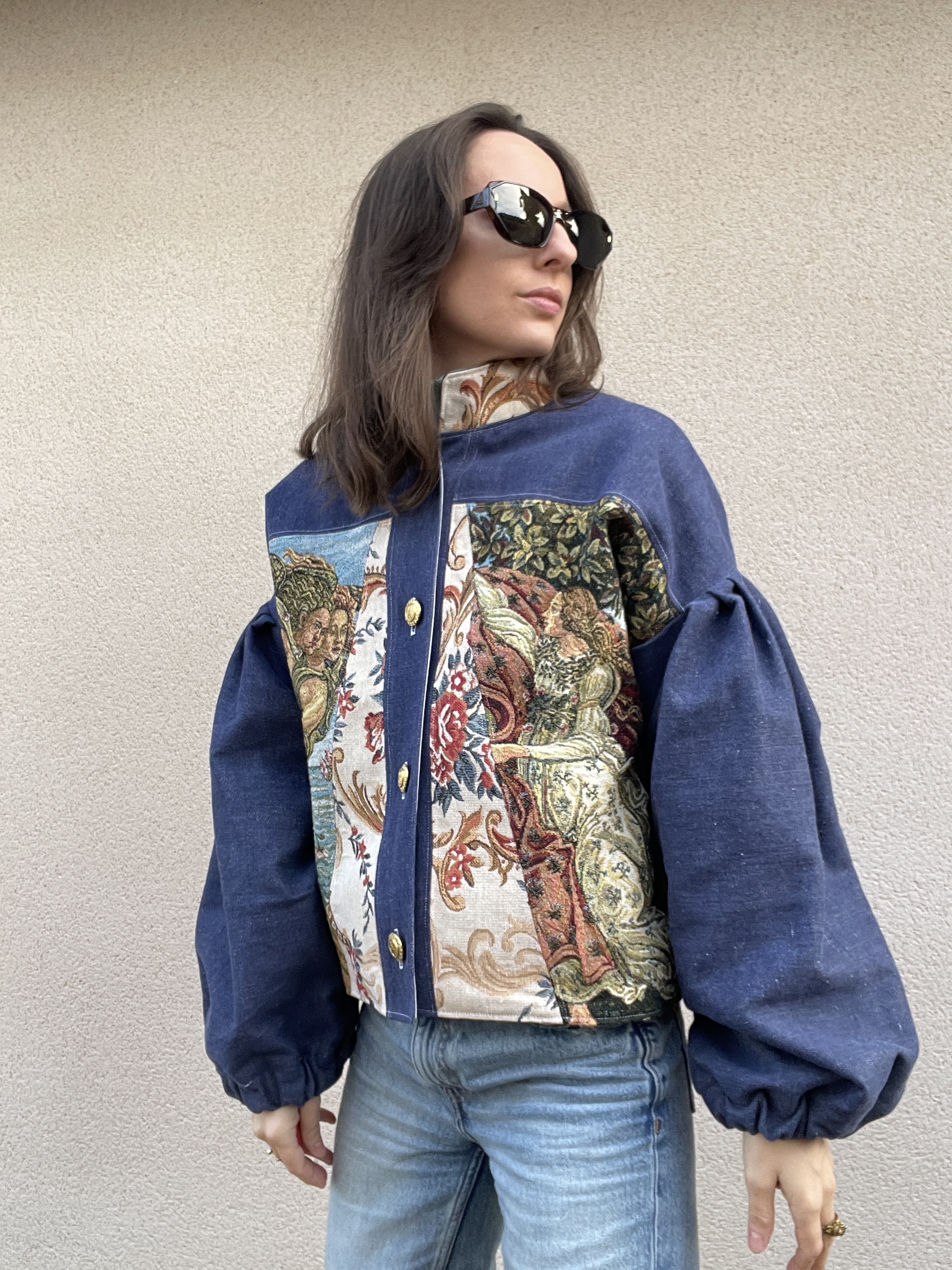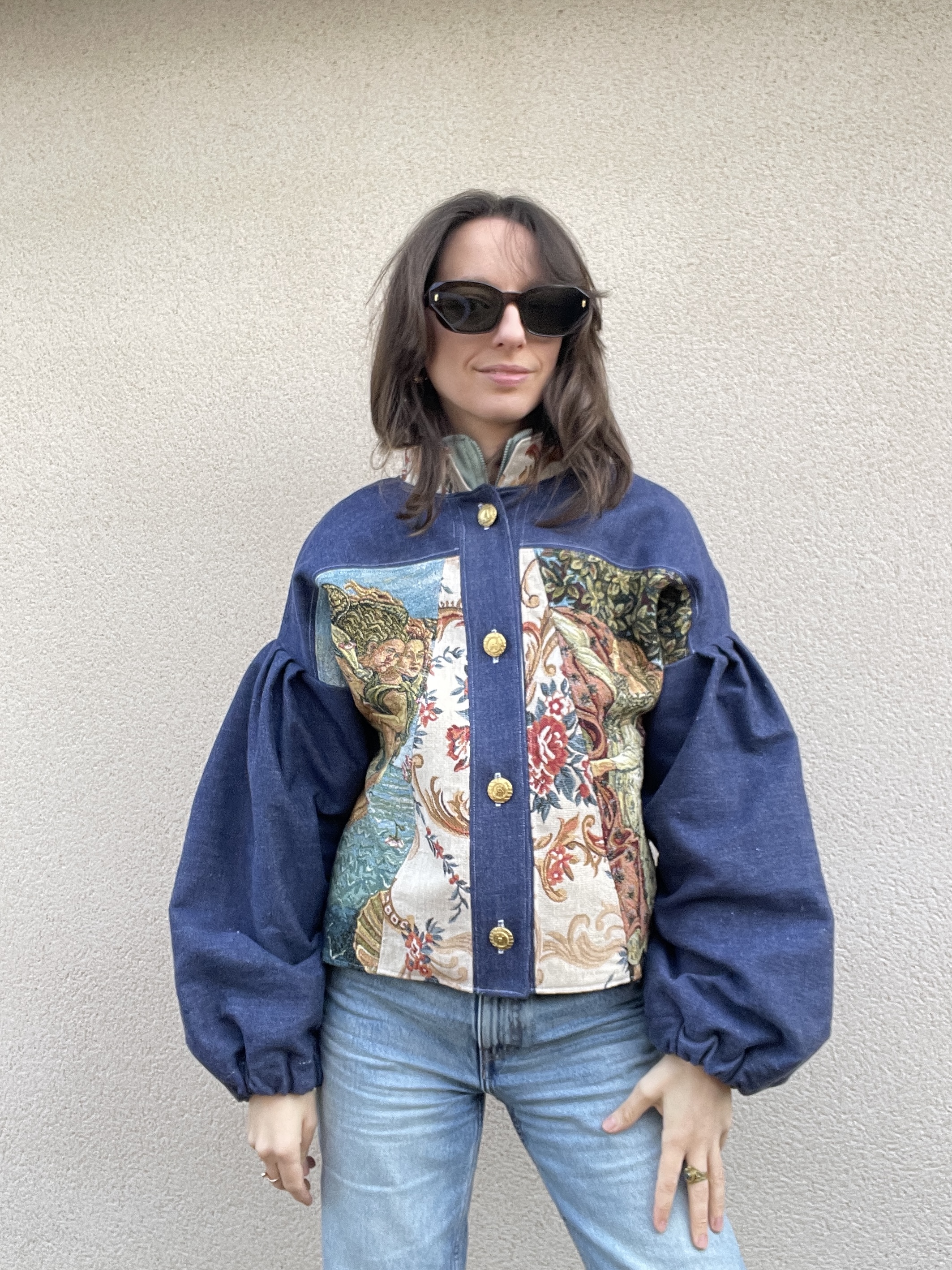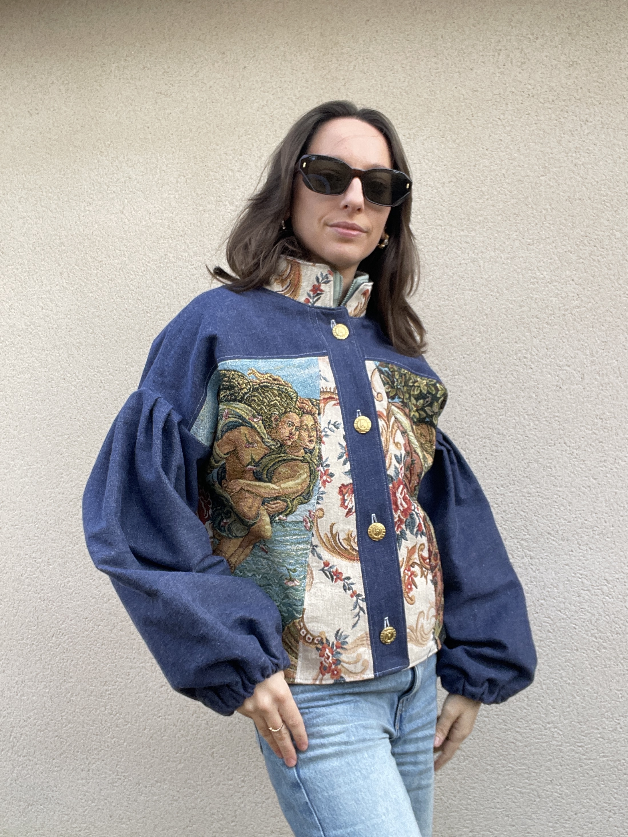 Patchwork de Jacquard renaissance et de jean chiné bleu