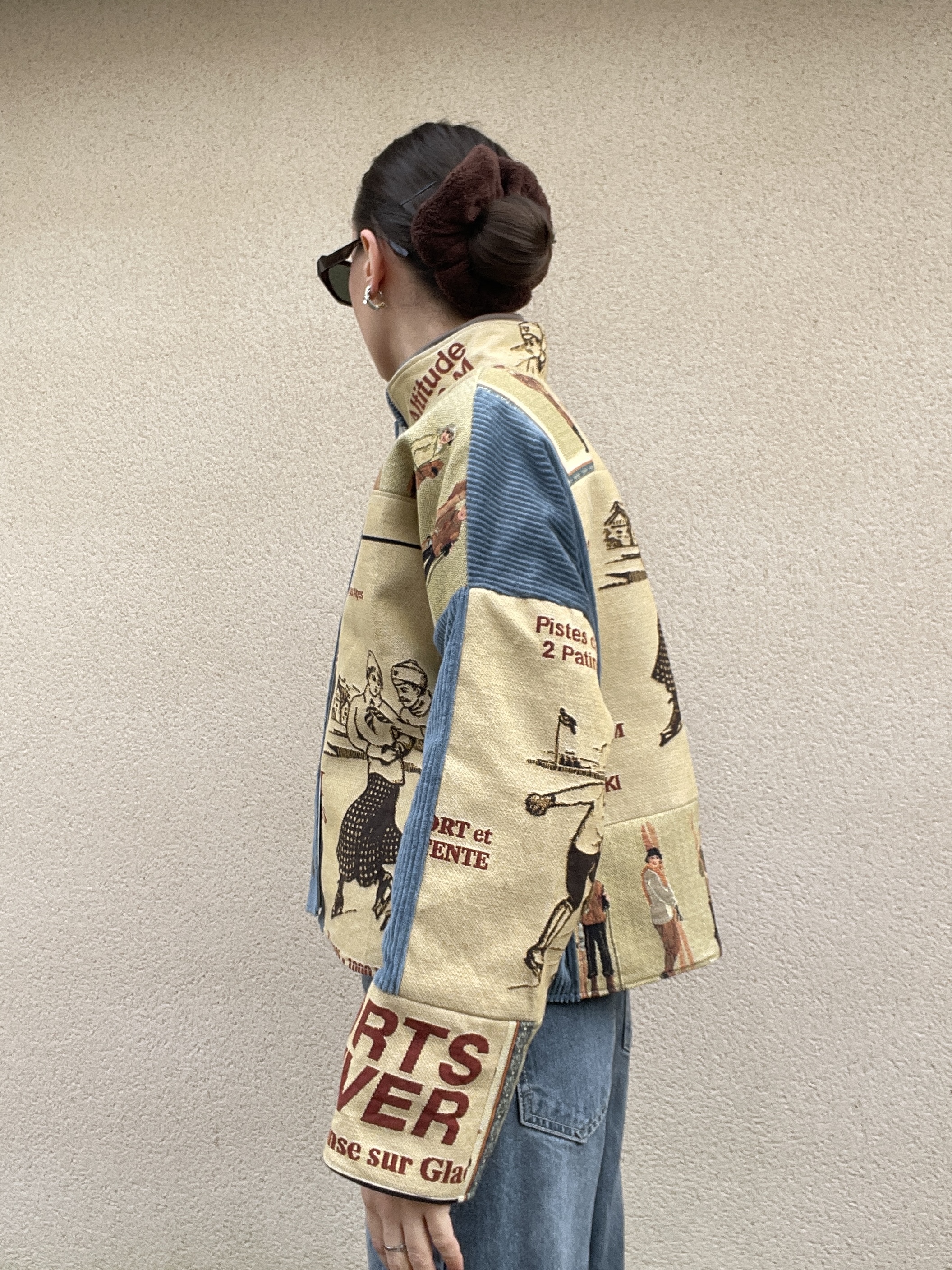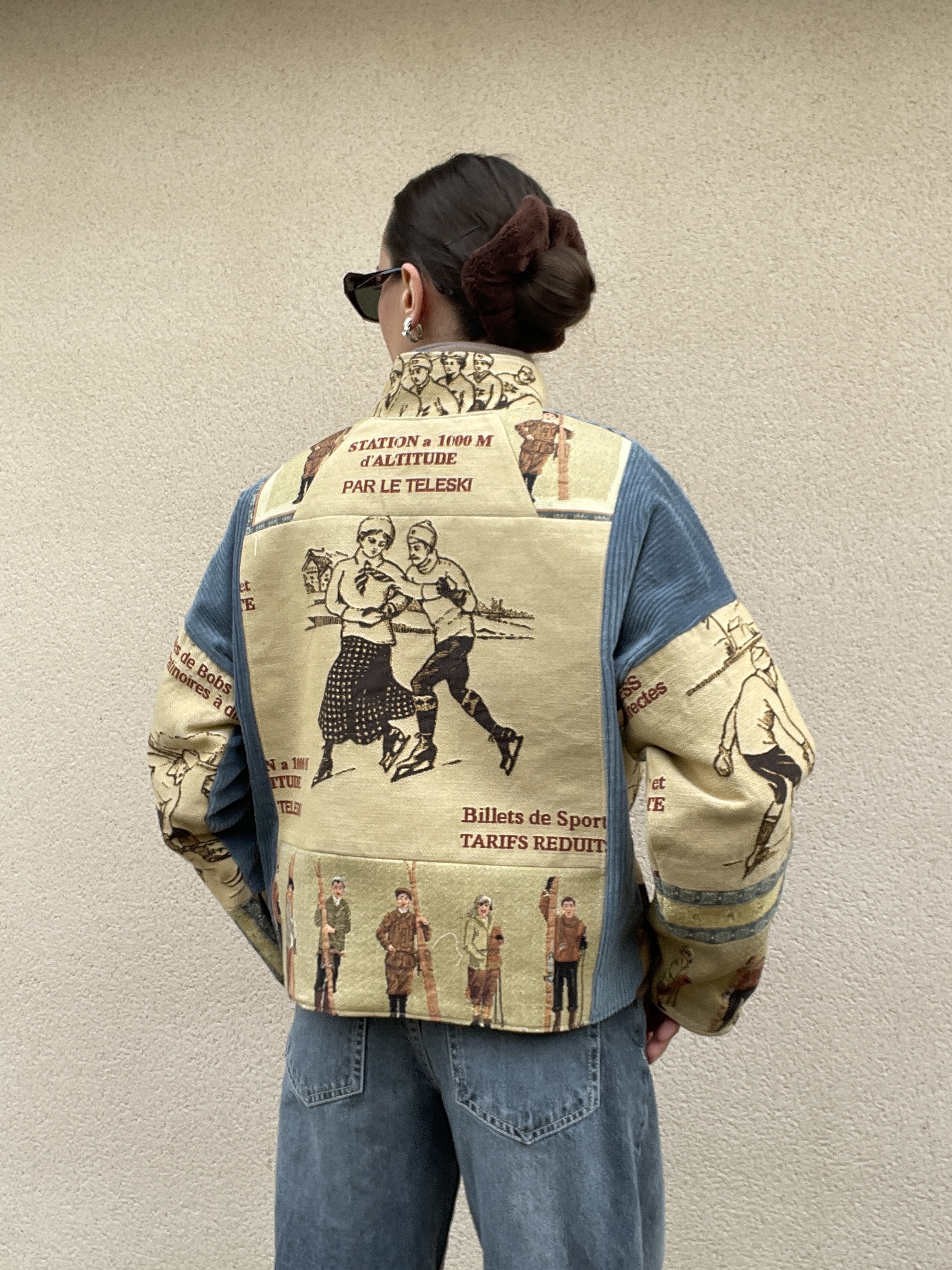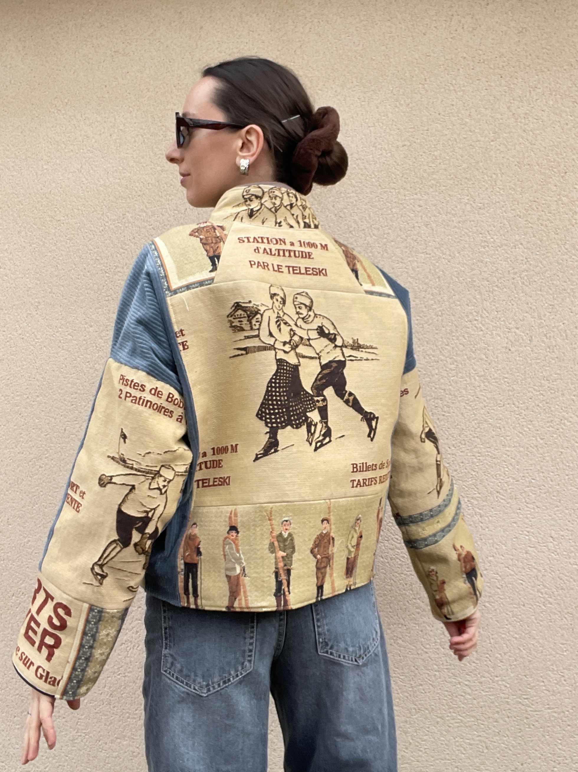 Patchwork de tissus : tapisserie, jacquard et velours côtelé bleu
