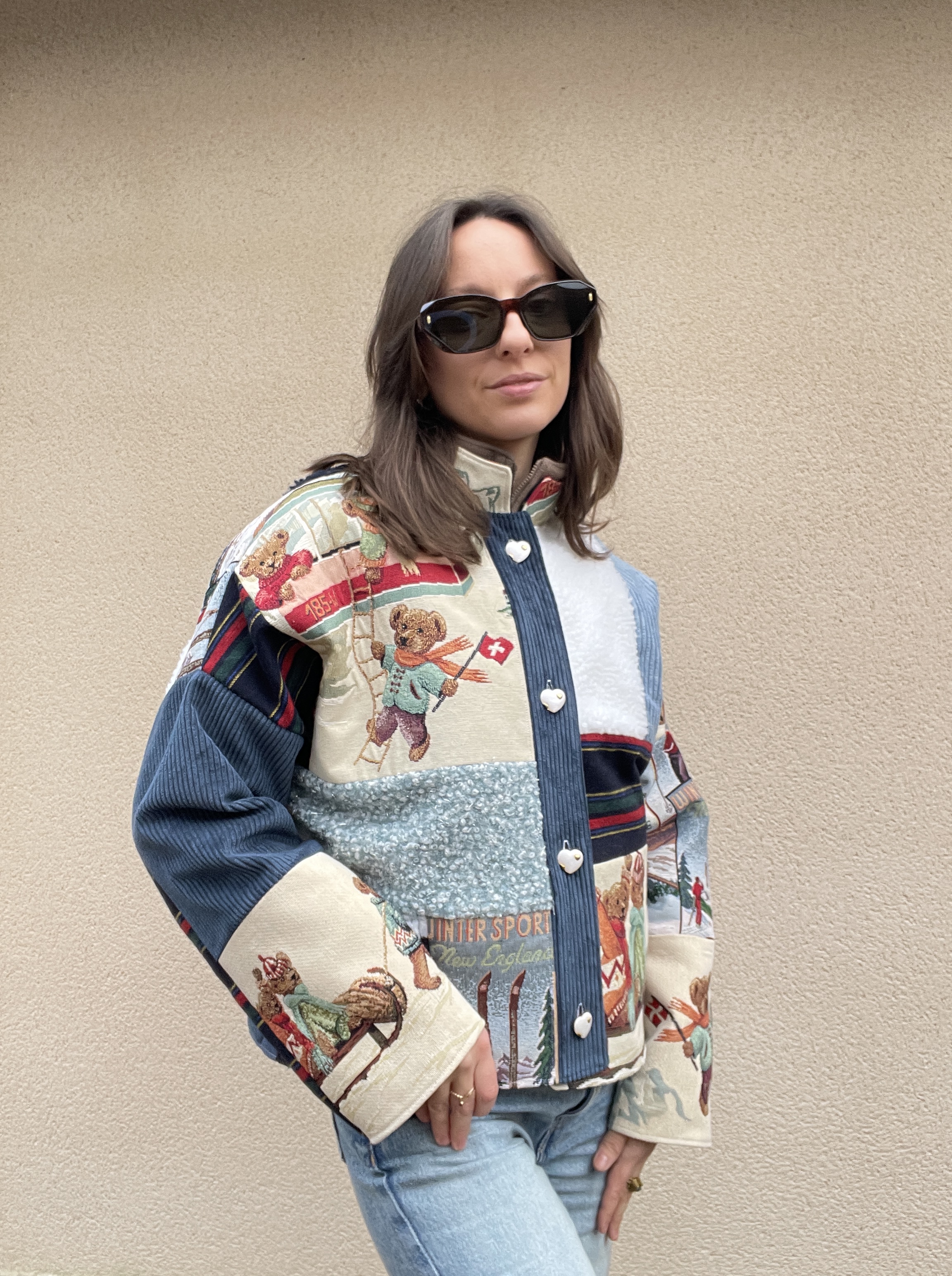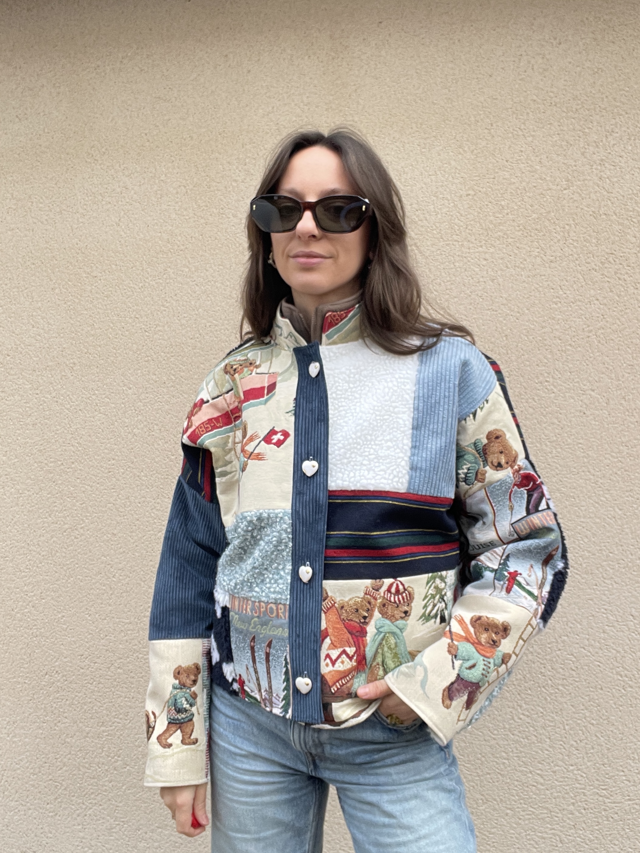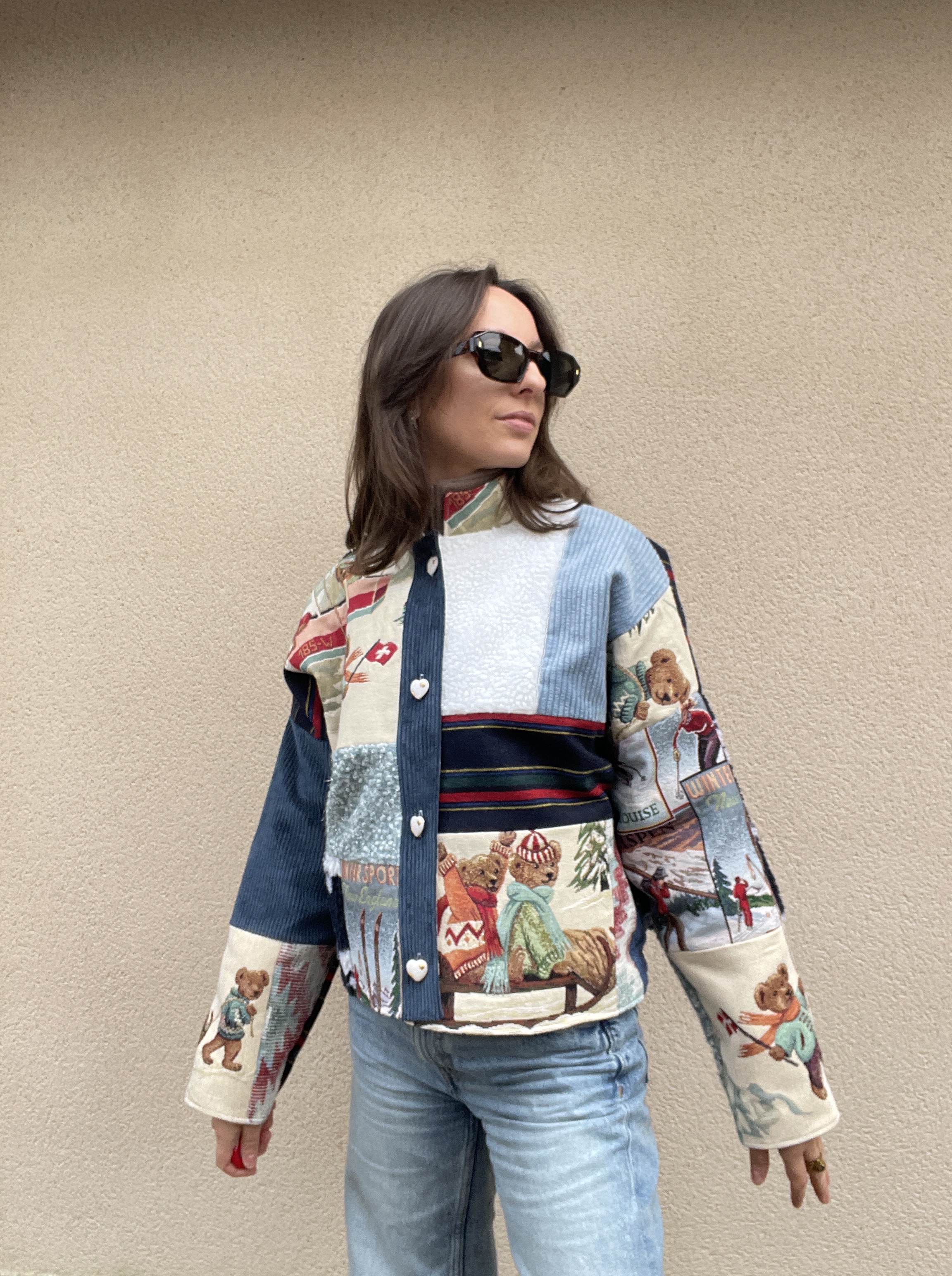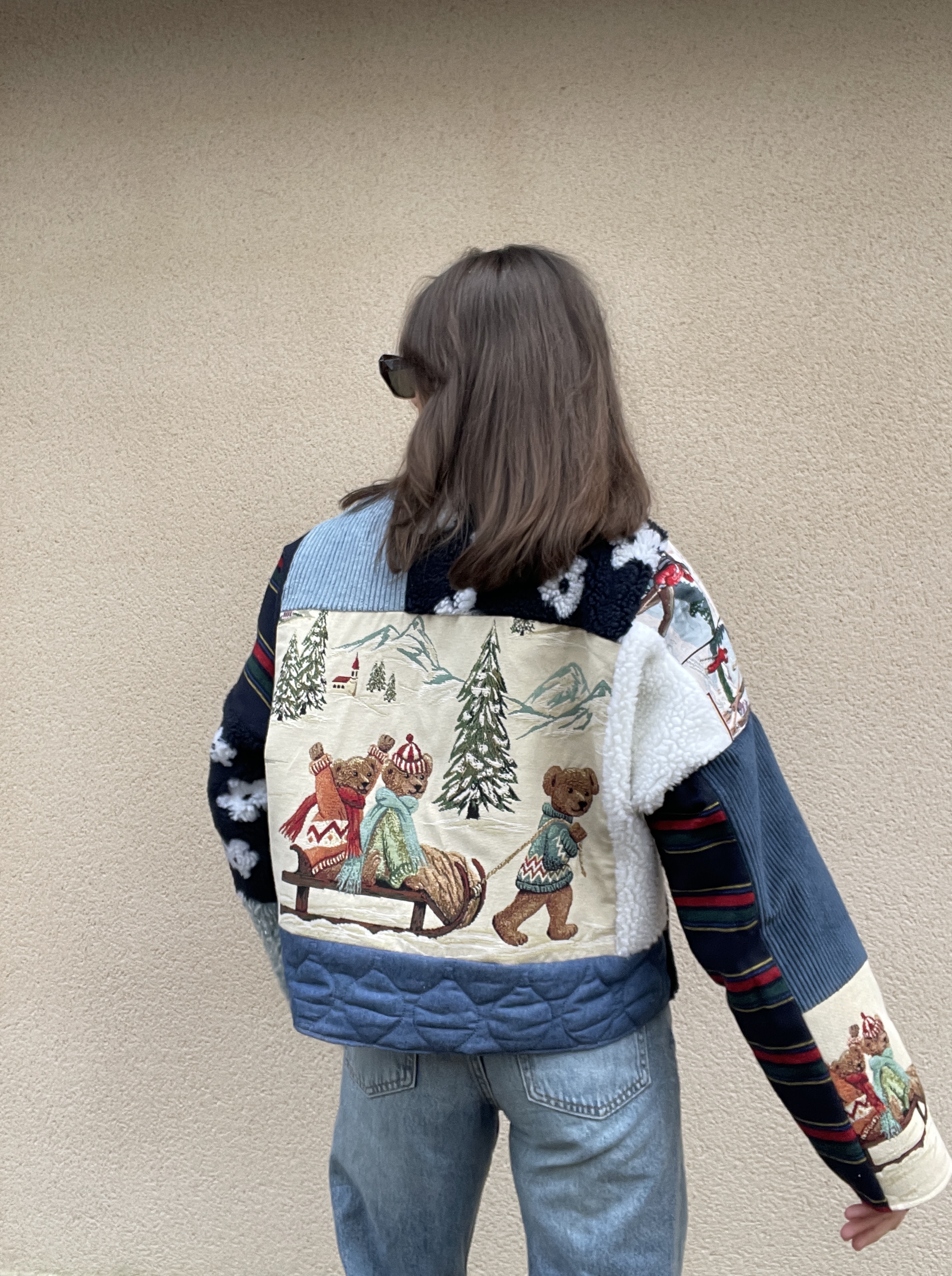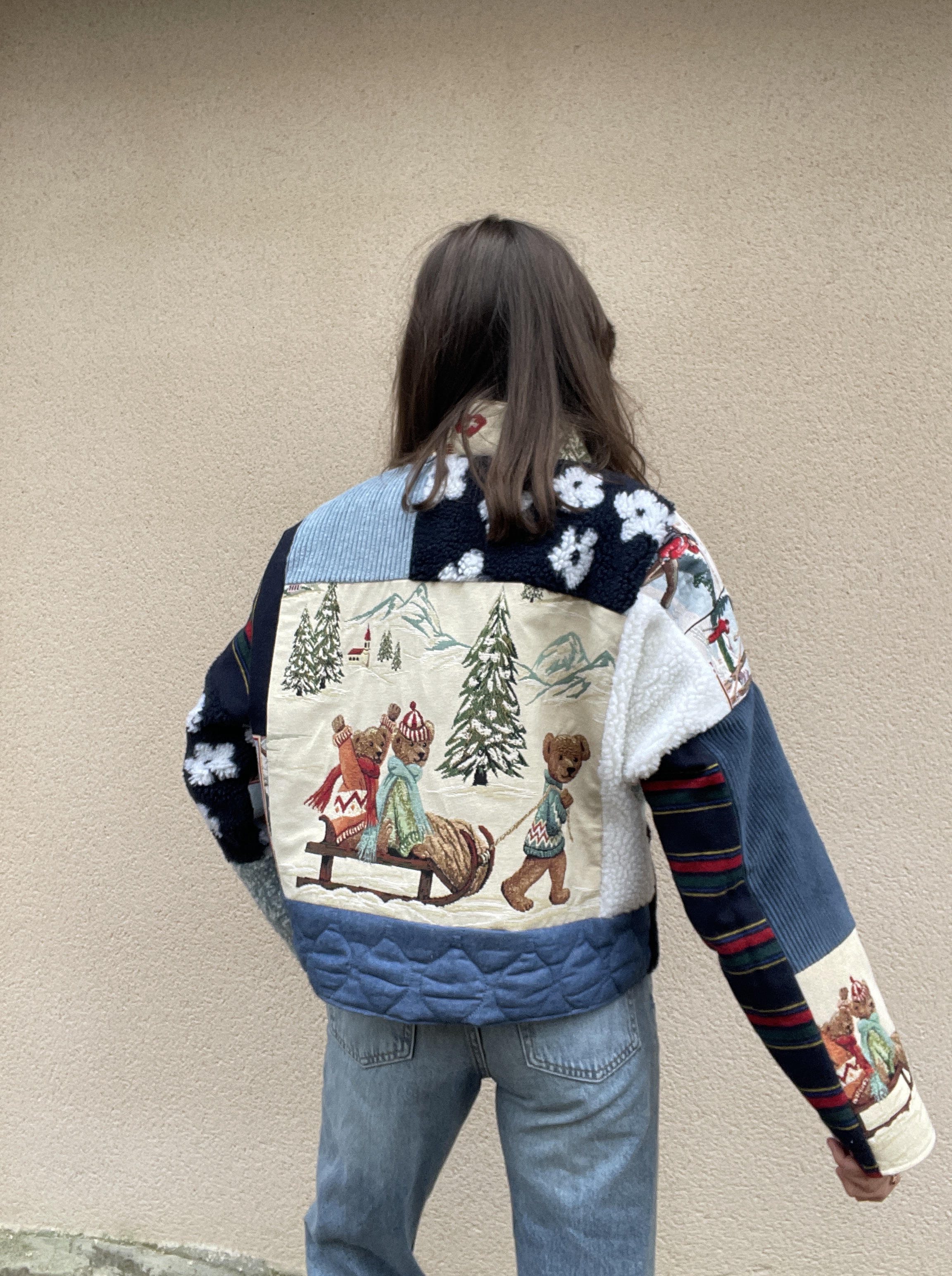 Patchwork de tissus : sherpa, jacquard, lainage..
