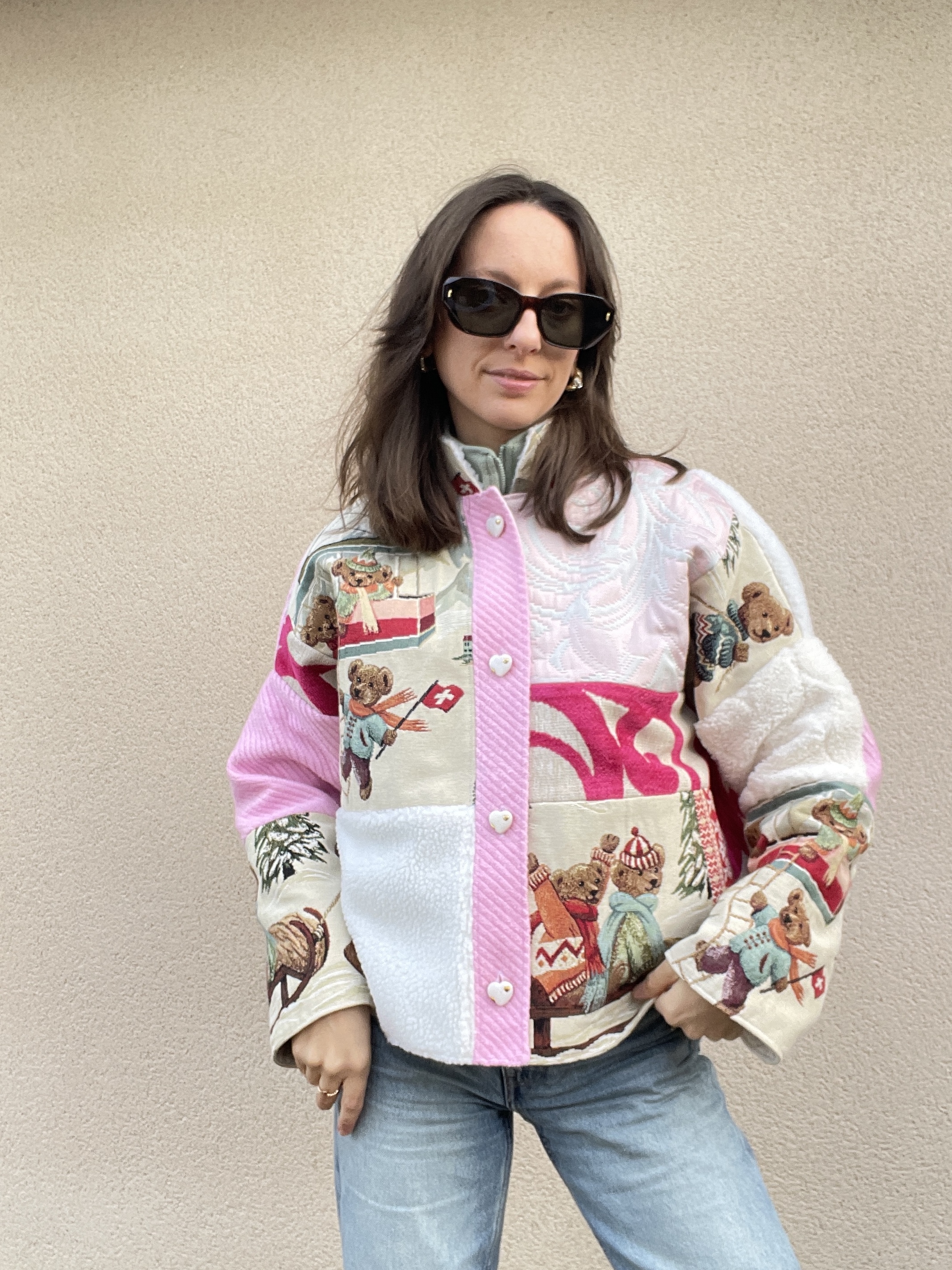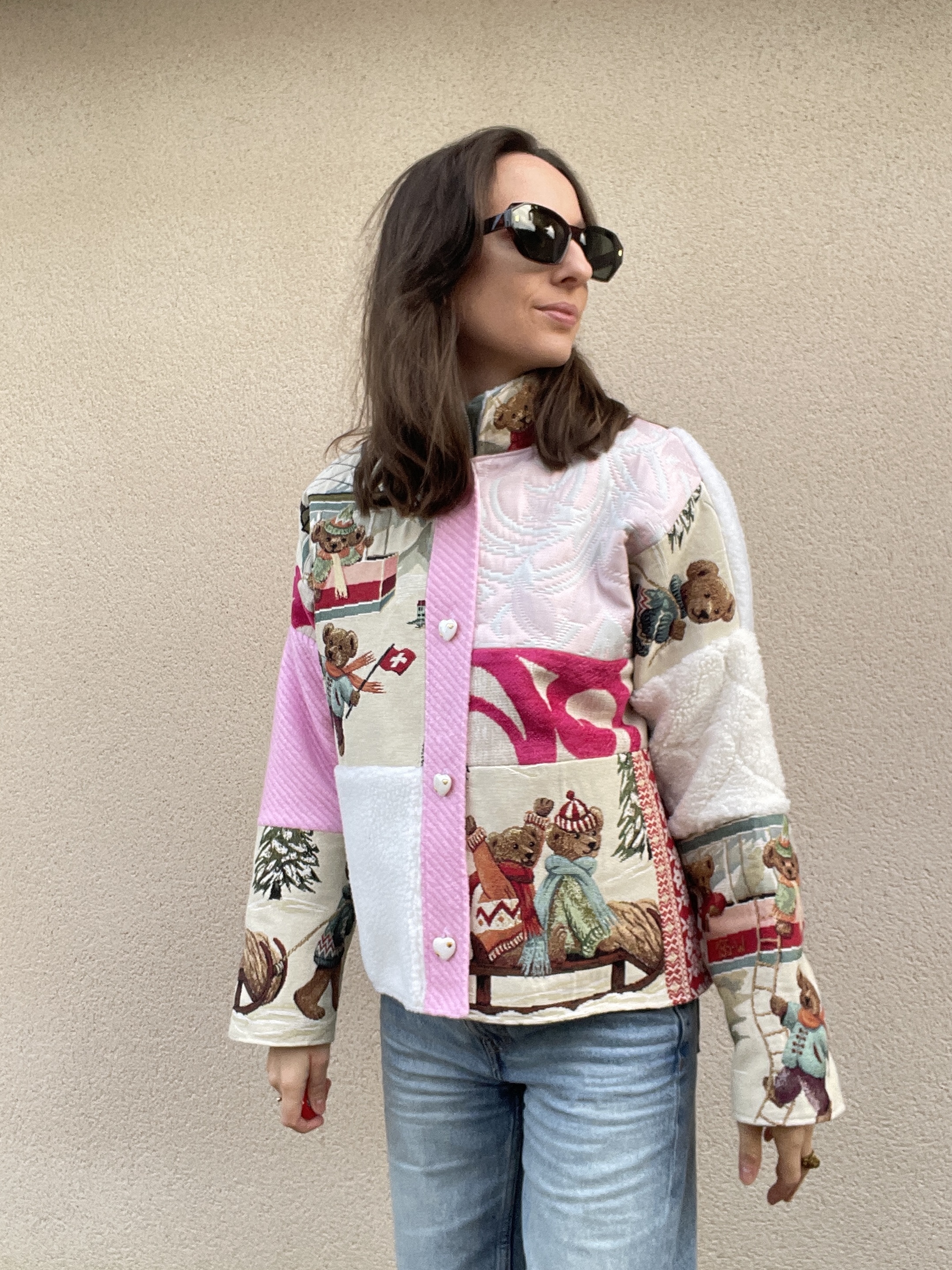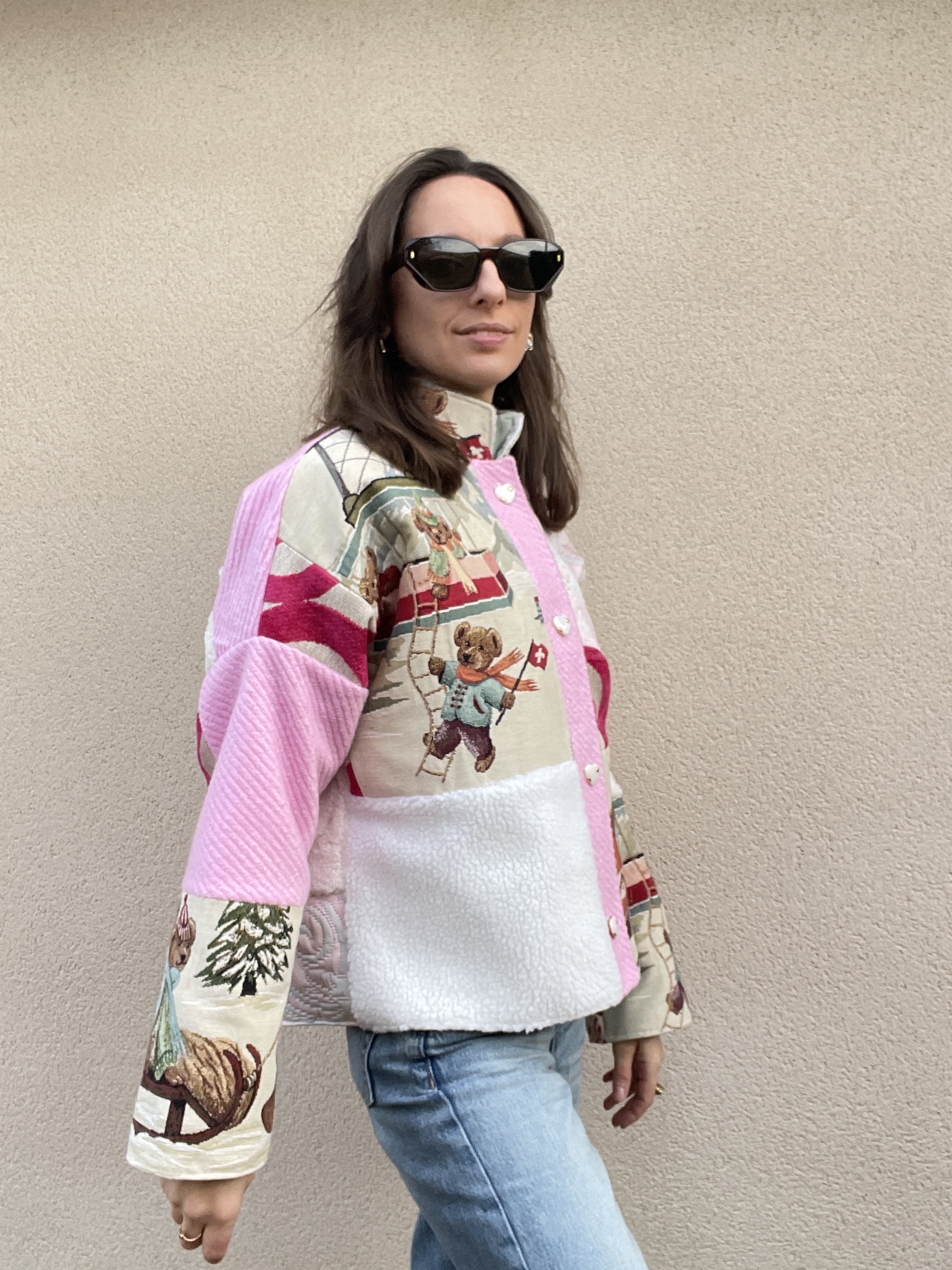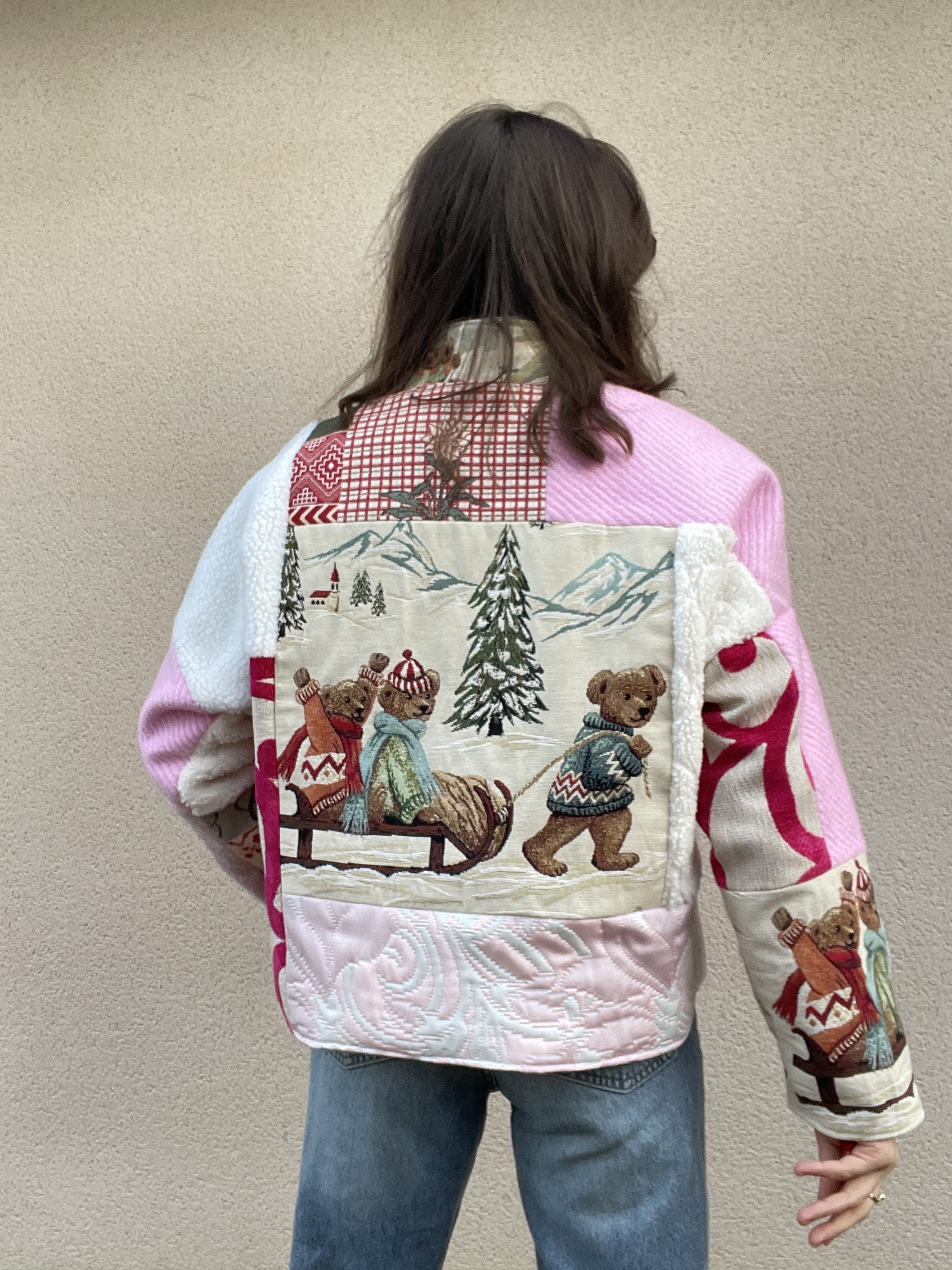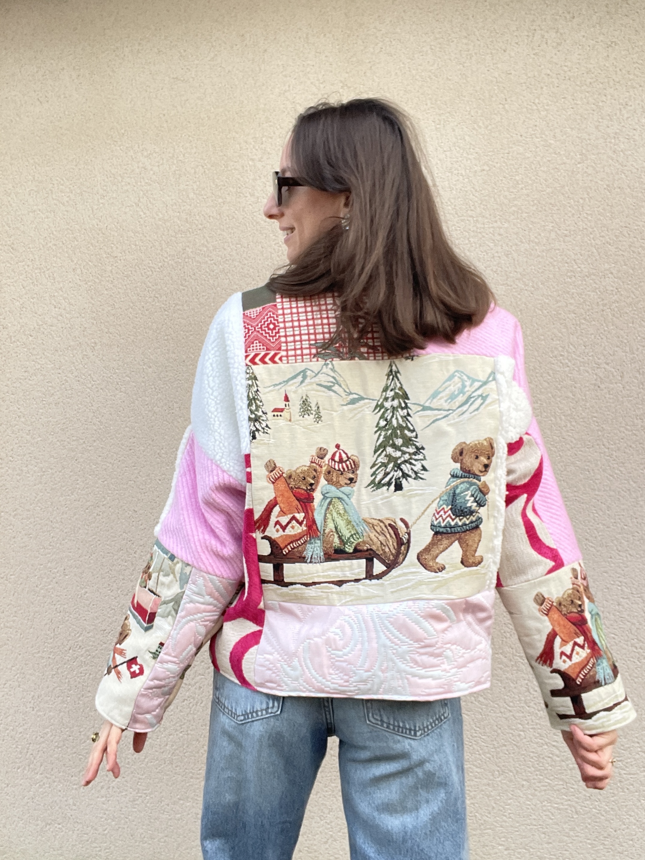 Patchwork de tissus : sherpa, jacquard, lainage..