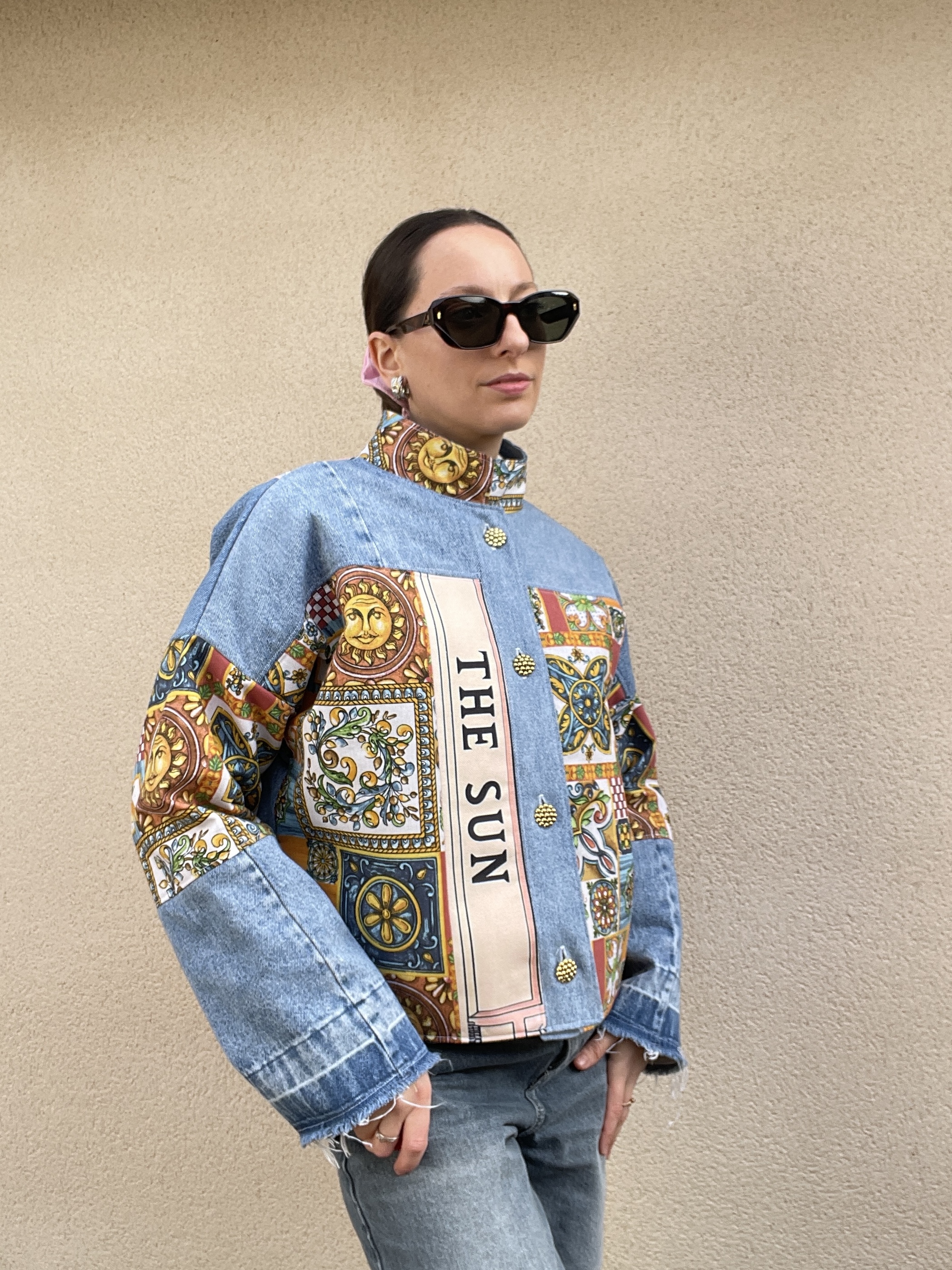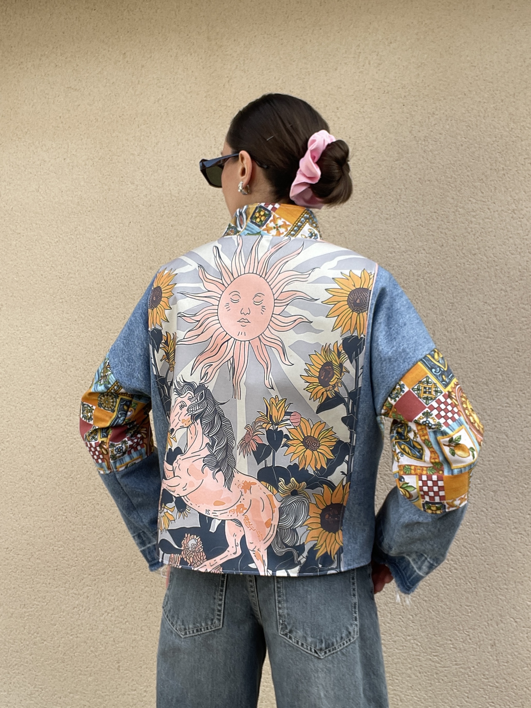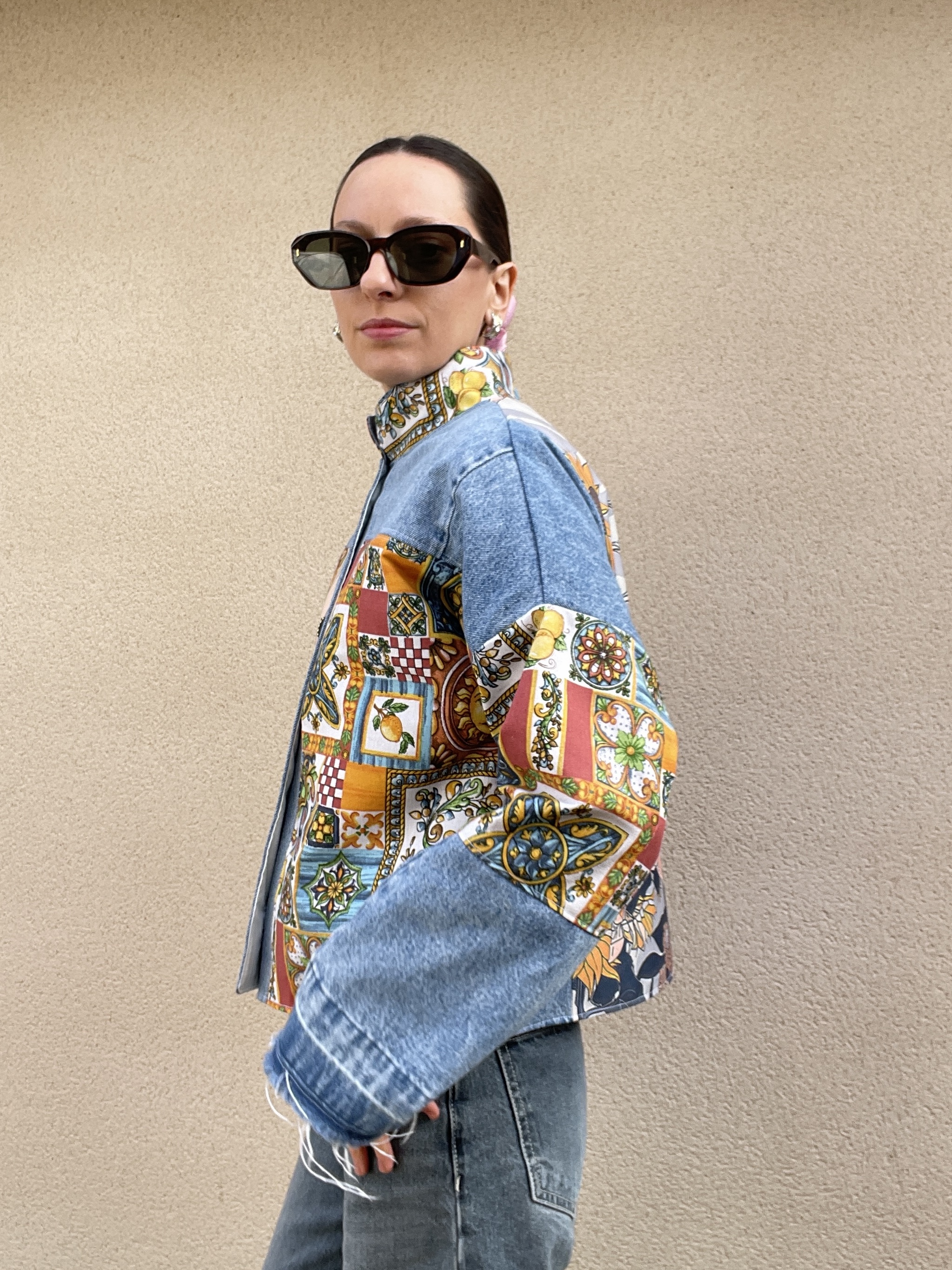 Patchwork de jean et de toile de coton multicolore